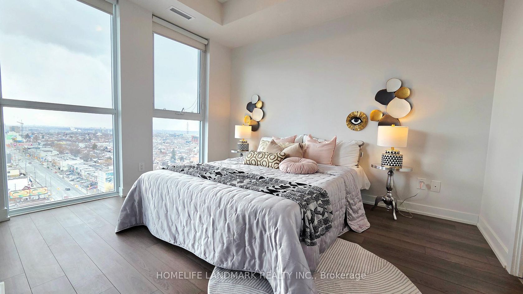 Welcome To This Beautiful And Spacious One Bedroom Plus Den Suite At Midtown Condos By Empire Communities. Featuring 9-Foot Ceilings And Laminate Flooring Throughout, This Unit Offers Two Full Bathrooms And Stunning Sunset Views. Kitchen Appliances With Standard Size, A Walk-in Closet, Just Steps To The Oakwood LRT Station. Enjoy Full Building Amenities Including A BBQ Area, Fully Equipped Gym, Concierge Service, Outdoor Rooftop Deck With BBQs, Pet Wash Room, Bicycle Repair Room, And Party Room.