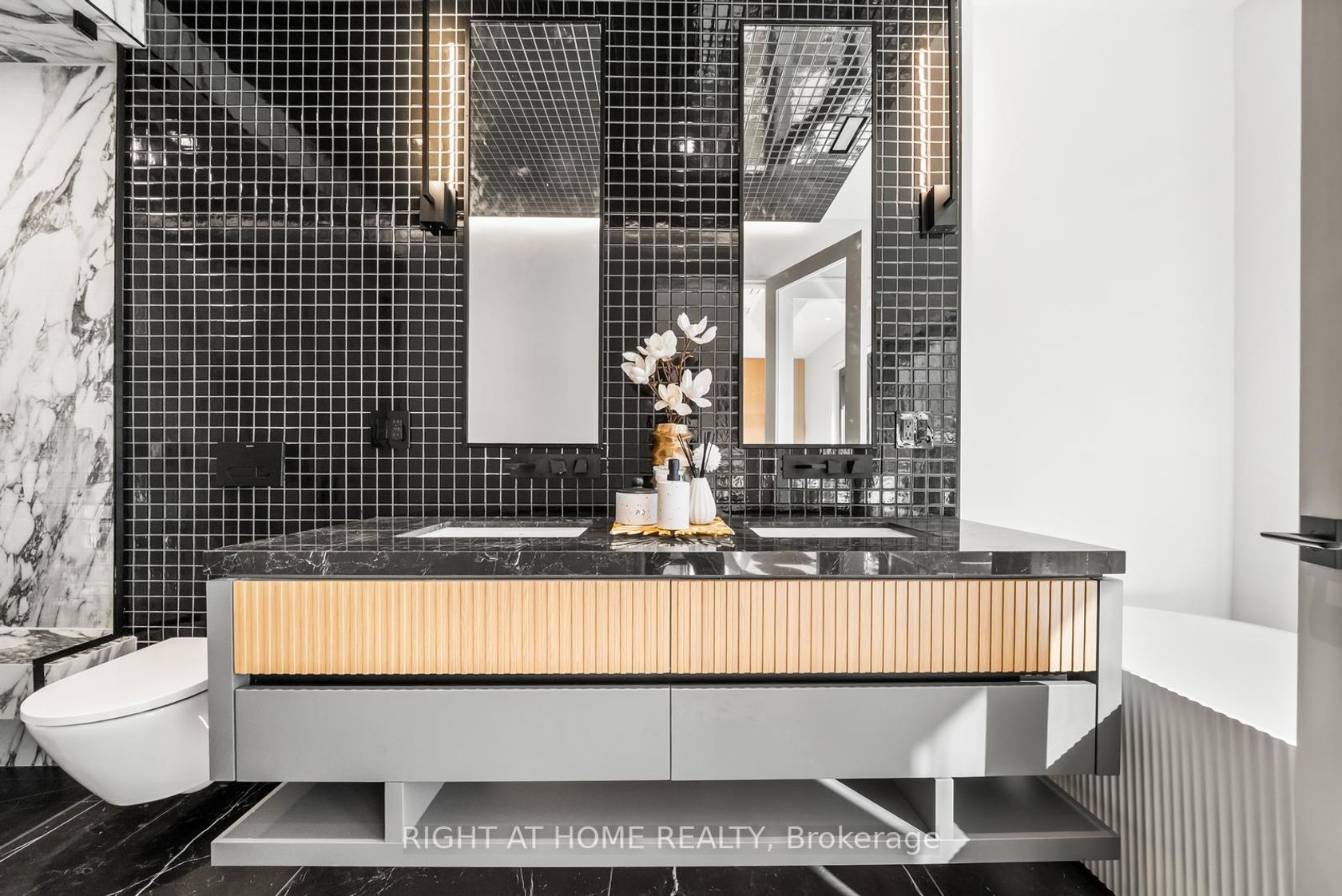 Welcome to 74B Rathnelly Ave - a brand-new built 2025, never-lived-in, custom-built luxury home in the prestigious Republic of Rathnelly, one of Toronto's most in-demand neighbourhoods. Steps to Yorkville and close to some of Canada's top private and public schools, this is a truly rare offering with exceptional design, craftsmanship, and high-end finishes throughout.Featuring German-imported Schüco aluminum windows and doors with triple-glazed glass, wide-plank white oak flooring, and a sleek trimless modern design with drywall-groove detailing. Impeccable interior detailing includes custom wall paneling and millwork, a statement mono-beam staircase, glass railings throughout, and upgraded strip lighting/fixtures. Chef's kitchen with custom-painted cabinetry, premium Sub-Zero & Wolf appliances, and natural stone countertops including Super White. Natural stone carries throughout the home (vanities, basement bar, fireplace), highlighted by a dramatic triple-sided marquee fireplace. Spa-inspired bathrooms feature CariMali Italian fixtures and wall-hung Duravit toilets, plus Italian tile and slab finishes with a strong focus on the Italian-slab basement.Enjoy a two-level, double-height heated basement with a large rec room and bar area. The exterior impresses with high-quality linear brick wrapping the sides/rear/walkout, extensive interlock (including interlock driveway), and a standout snow-melt heated system in the driveway, front porch, heated garage area, rear walkout, and even select portions of the backyard for year-round comfort. Entertain on the composite deck and enjoy a large backyard rarely found in the area, complete with composite fencing for a clean, modern finish.Integrated heated garage (extremely rare in the neighbourhood), two furnaces + two A/C systems, high-efficiency spray-foam insulation, smart security/speaker system, central vacuum, and more - a true turnkey statement home in an A+ location.