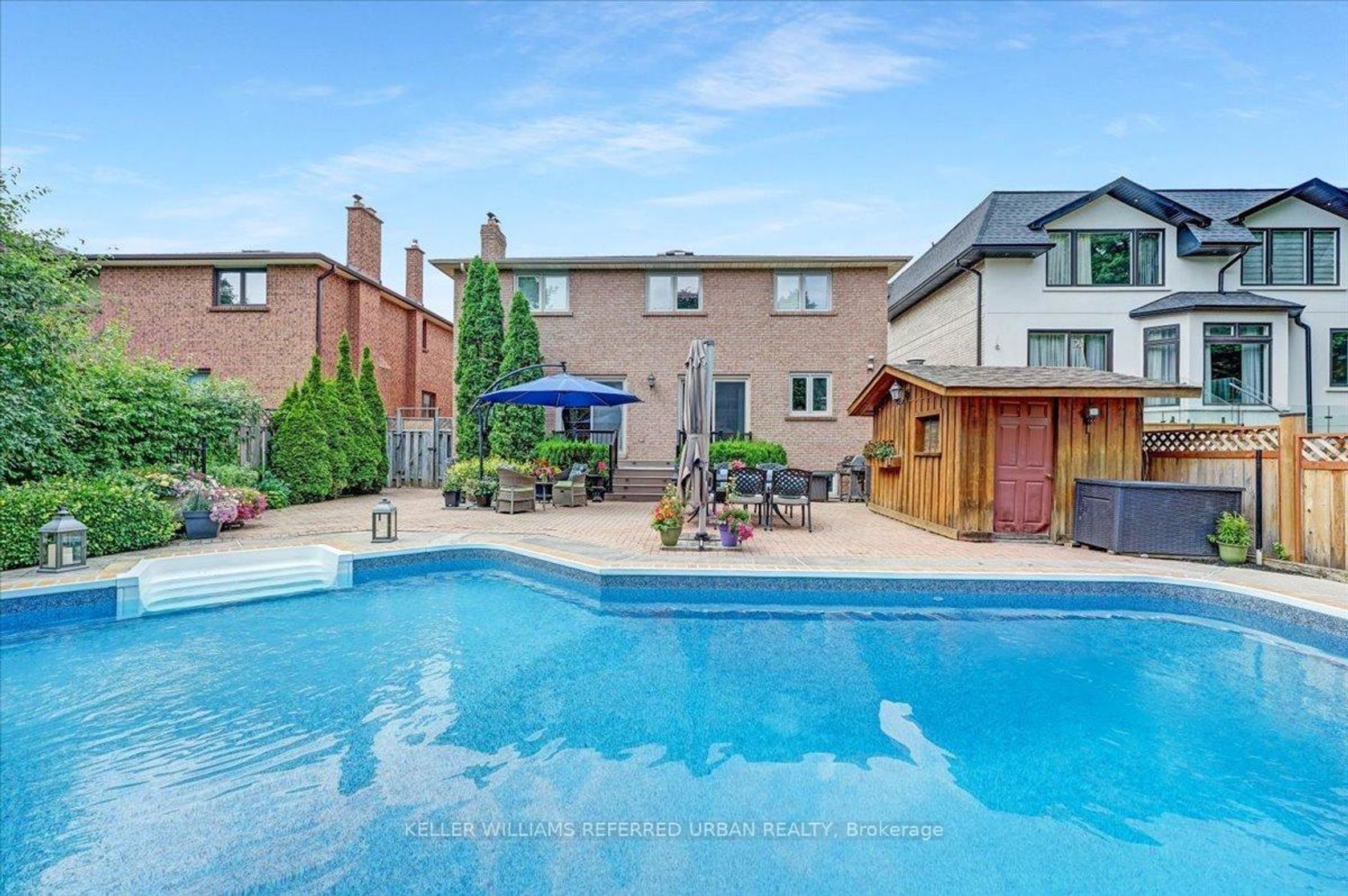 Here it is - everything you want in a family home! Proudly maintained and thoughtfully updated, this solid 5+ bedroom, 5 bath home offers exceptional space, warmth and long-term pride of ownership on a coveted 50 x 150' south lot with patios, gardens and private pool oasis! Smart floor plan. A welcoming foyer has vaulted ceilings. Solid hardwood floors carry through elegant living and dining rooms, while the main floor family room with fireplace and custom built-ins walks out to the patio and pool. A main floor office, laundry room and powder room and direct garage access add everyday practicality. The family-sized kitchen is the heart of the home and features quality cabinetry, granite counters, quality stainless steel appliances and a bright breakfast area. Walk out to a private backyard retreat complete with generous stone patio, mature landscaping and a salt water in-ground pool - your own summer sanctuary. This is the perfect floor plan! Upstairs, 5 generous bedrooms all offer hardwood floors and large closets. The spacious primary suite includes a walk-in closet and a modern 5pc ensuite with heated floors, double vanity, deep soaker tub and separate shower. The finished lower level expands your living space with a huge family room with fireplace. Kid space/media room/games room++ A full bath and flexible office/bedroom options/great guest rooms/home gyms! Fabulous space to use as you choose! Handy people will love the well-planned workshop. Replaced windows 2016, recent gas furnace and central air 2022, replaced roof shingles & updated insulation 2017, 200 amp, 2 Car garage has 60amp 240V service, Updated kitchen has many newer stainless appliances, double private drive and perennial gardens with inground sprinkler complete this exceptional home. Ideally located close to Yonge Street, subway, many parks and top-ranked Churchill PS and Willowdale MS. A timeless family home in one of North York's most established and walkable neighbourhoods.
