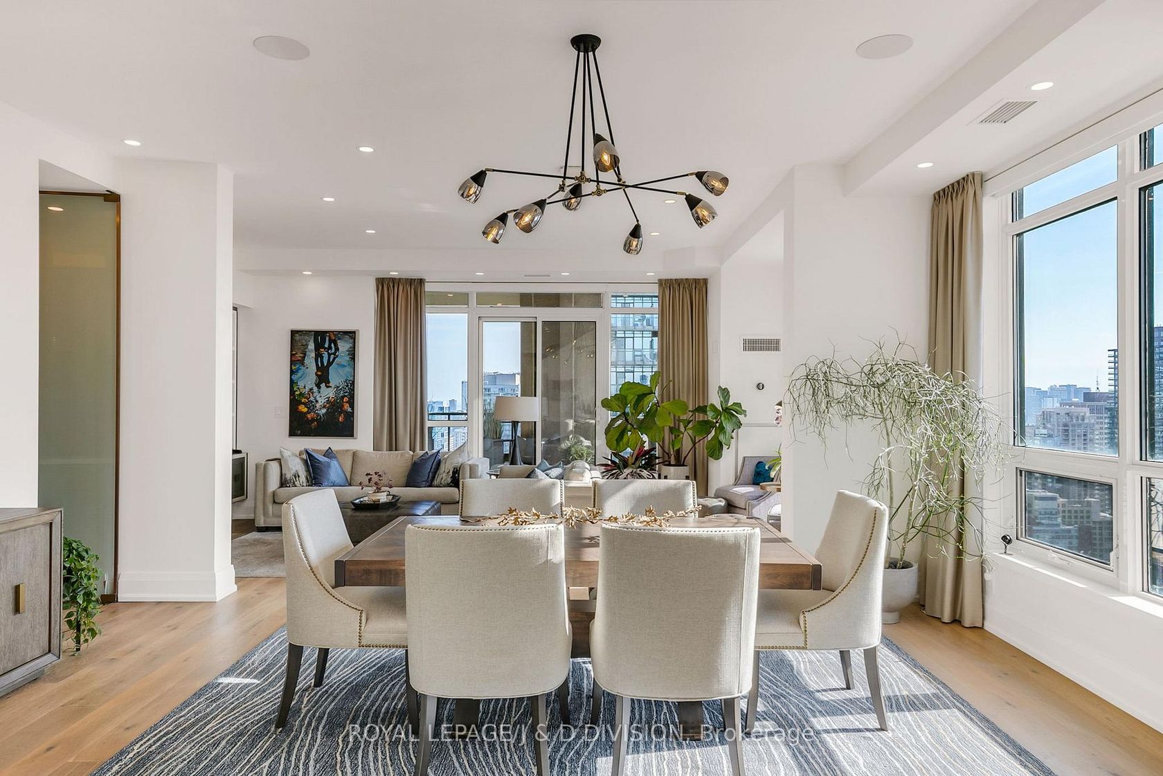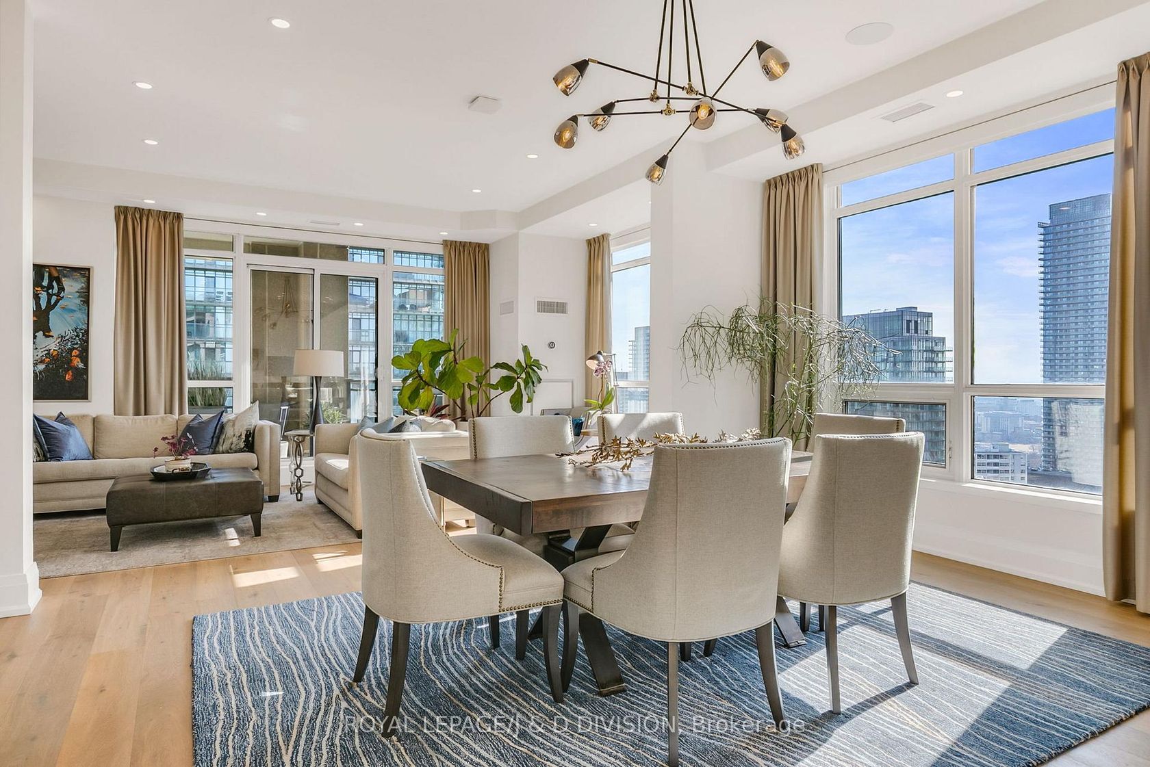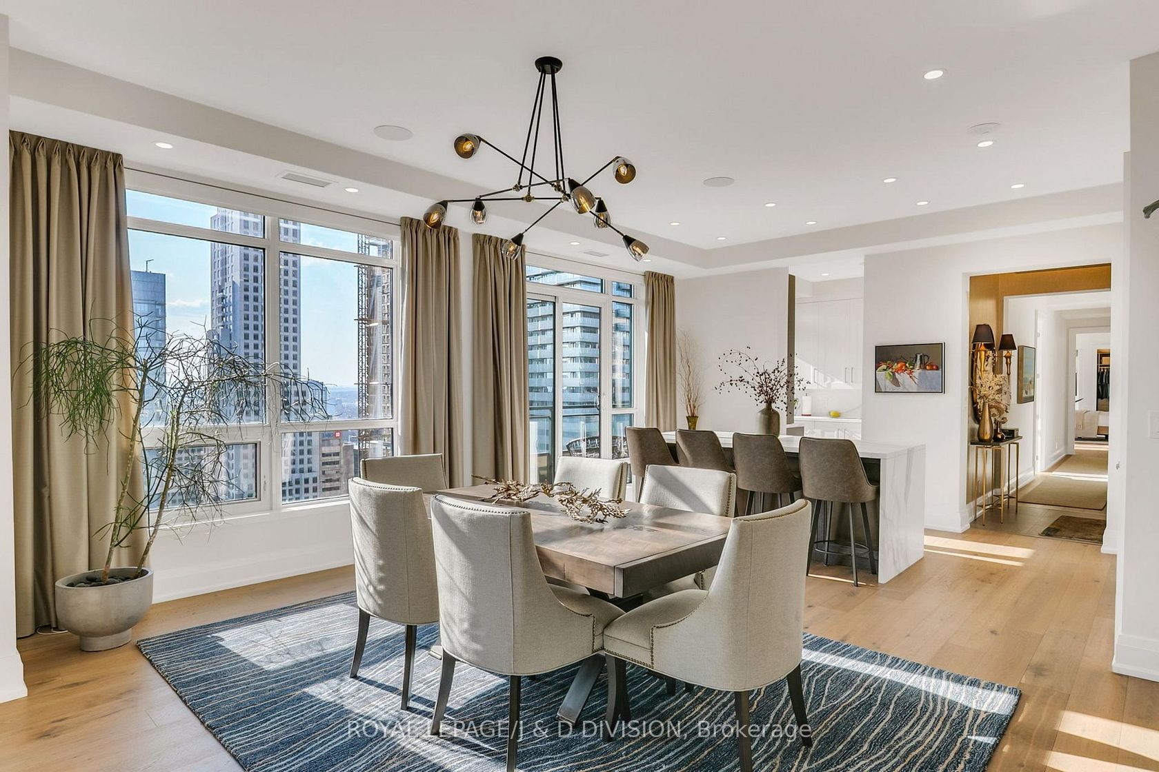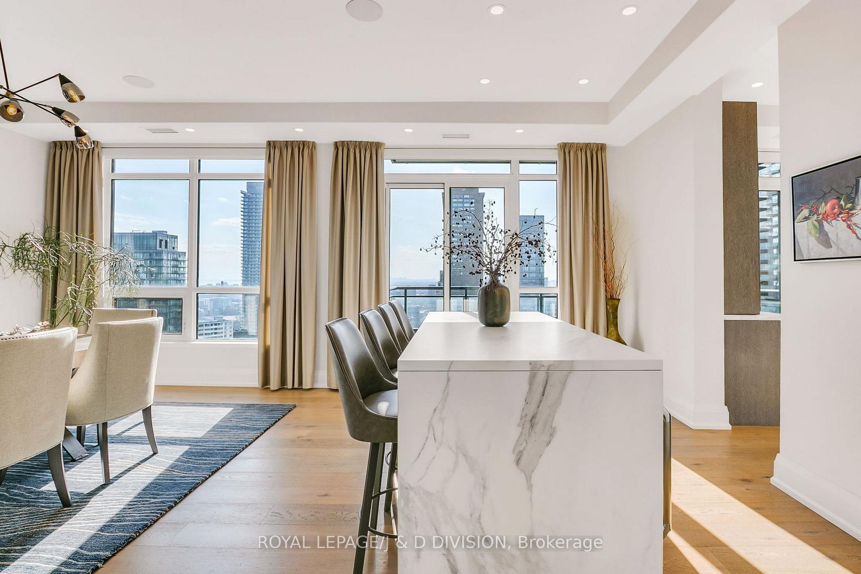 Experience the pinnacle of urban luxury in this expansive 1,954 sq. ft. sub-penthouse residence, offering a rare bungalow-in-the-sky lifestyle on the edge of prestigious Yorkville. Shared with only one other suite on the floor, this home spans the entire westerly side of the building, providing a front-row seat to stunning daily sunsets. Bathed in epic natural light from floor-to-ceiling windows and soaring 10-foot ceilings throughout, the interior is finished with stunning wide-plank white oak hardwood and elegant porcelain flooring.The heart of the home is an open-concept living and dining area anchored by a cozy gas fireplace, a custom porcelain-clad waterfall island, and a strategic pantry/bar area with a full-size wine fridge and abundant storage. The chef-inspired kitchen is a standout, featuring custom-designed cabinetry by the renowned Downsview Kitchens, premium appliances, and a gas range. Truly extraordinary for city living, this residence boasts five sets of patio doors leading to a spacious south-facing terrace and two west-facing balconies-totalling 371 sq. ft. of private outdoor space. The main terrace features a rare built-in gas line for BBQs, which are permitted. For added convenience, gas service for the BBQ, fireplace, and cooktop is included in the monthly maintenance fee.Unique to this home are two separate entrances: a formal main entry and a highly functional secondary mudroom with a custom built-in bench. The primary suite is a true retreat featuring a 5-piece spa-like ensuite, four closets, and private balcony access. Includes two-car parking and an owned locker. Residents enjoy premium amenities including a 24-hour concierge, exercise room, pool, a 17th-floor garden, and two available guest suites for visiting family and friends.This dog-friendly building welcomes pets of all shapes and sizes. Steps from the subway, Eataly, and world-class shopping, this is a rare opportunity for refined city living with flexible possession available.