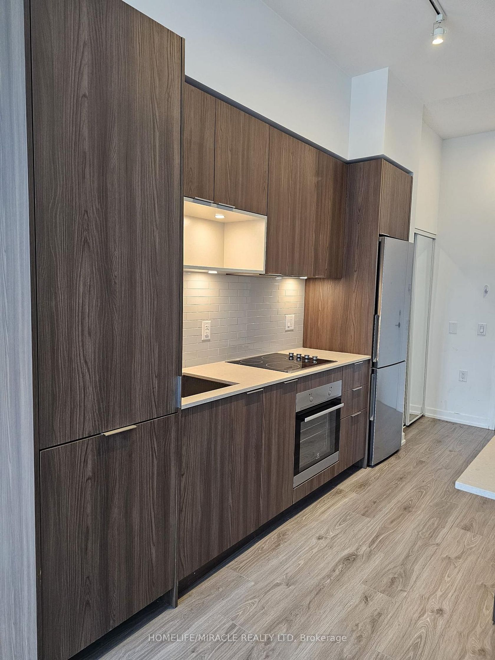 Step into this beautifully designed 1 Bed + Den Suite at Wyatt Condos in one of Toronto's most dynamic and rapidly evolving neighbourhoods. This bright and modern condo perfectly blends style and functionality. The open-concept layout is ideal for both relaxing and entertaining, featuring wide-plank flooring, soaring windows that flood the space with natural light, and a generous living and dining area that flows effortlessly into a sleek, modern kitchen. Outfitted with quartz countertops, high-end appliances, and a centre island with a breakfast bar, it's a dream setup for home chefs and hosts alike. The versatile den makes a perfect home office or guest nook, adding flexibility to your lifestyle. Live steps from green spaces, local coffee shops, community centres, and a vibrant arts scene. With TTC streetcars, buses, and subway access close by plus easy connections to the DVP and Gardiner Expressway getting around the city is a breeze. Building Amenities Include A Fully Equipped Fitness Centre, Rooftop Terrace, Party Room, Lounge, Kids' Play Area, And 24-Hour Concierge. Discover the ultimate blend of comfort, convenience, and cosmopolitan lifestyle.
