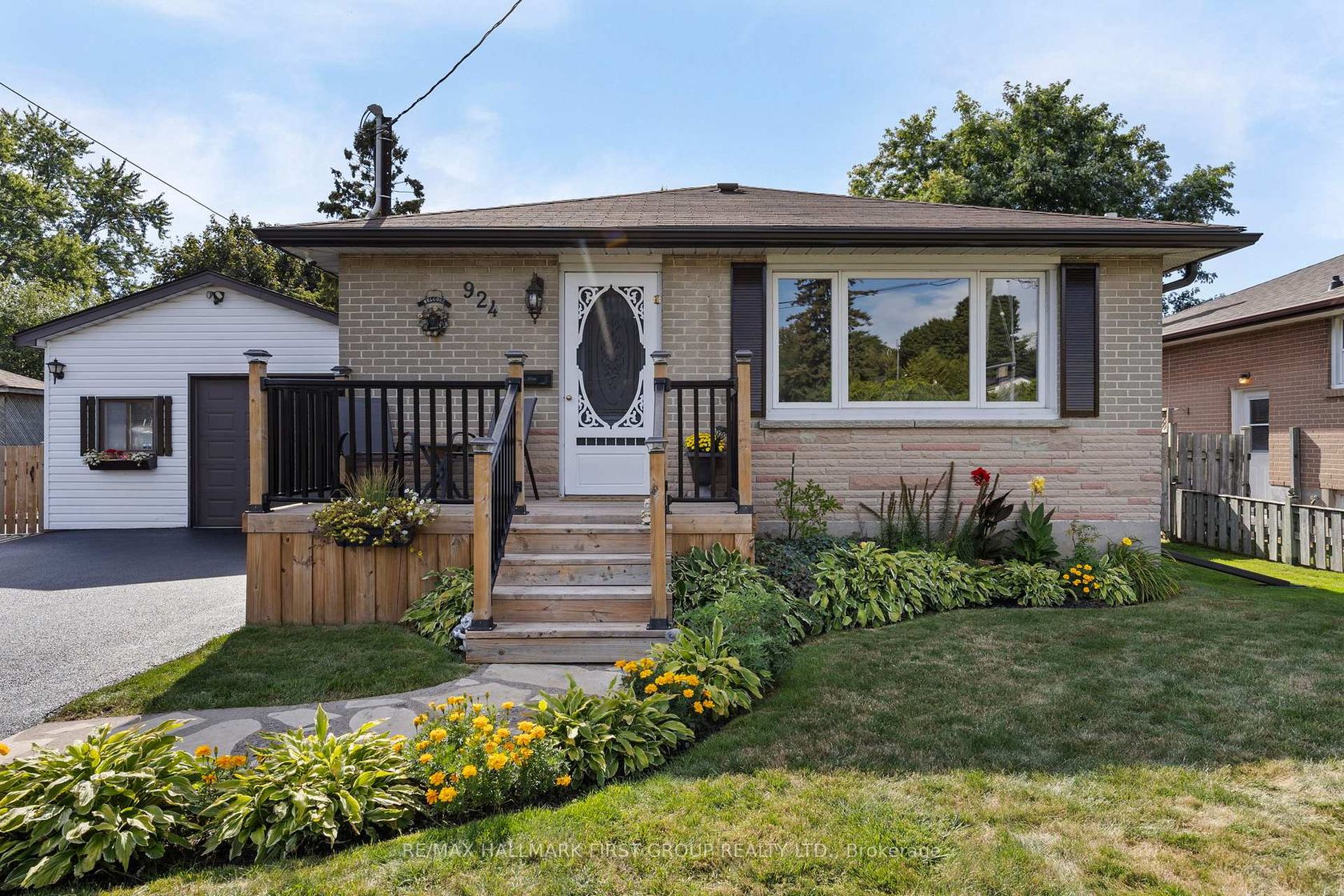 Welcome to this beautifully renovated and lovingly maintained detached bungalow, perfectly situated on a generous pie-shaped, fully fenced lot with a sunny western exposure. Nestled in an established neighbourhood close to schools, parks, shops, downtown amenities, and with quick access to Hwy 401 and transit, this home offers both convenience and charm.A true standout feature is the separate 400 sq. ft. detached heated and insulated garage/workshop, measuring 18' x 24'. Complete with windows, fluorescent lighting, 40 AMP electrical service, a 45,000 BTU gas heater, shelving, storage loft, and built-in workbenches, its the ultimate space for hobbyists, car enthusiasts, or anyone in need of a functional man cave. Inside, you'll find a spacious open-concept kitchen featuring stainless steel appliances, crown mouldings, and a handy pass-through to the living room. The living room shines with hardwood flooring and a large picture window that fills the space with natural light. Step out to the welcoming front deck, complete with aluminum railings and spindles, offering a perfect spot to enjoy your morning coffee.The thoughtful layout continues with a separate side entrance for easy access to the basement. A French door leads from the main floor into a versatile side vestibule. The flexible third bedroom (or office space) comes with laminate floors, a Murphy bed, and direct sliding glass door walk-out to the covered backyard patio. This area is perfect for lounging, entertaining, or enjoying summer barbecues, all while overlooking the landscaped garden. The fully finished basement adds even more living space with two additional bedrooms, a large open recreation room featuring a cozy gas fireplace, and a full three-piece bathroom with a separate shower stall. Additional highlights include ample driveway parking for up to six cars, neutral freshly painted interiors, and a move-in ready presentation that reflects the care and pride of ownership throughout.