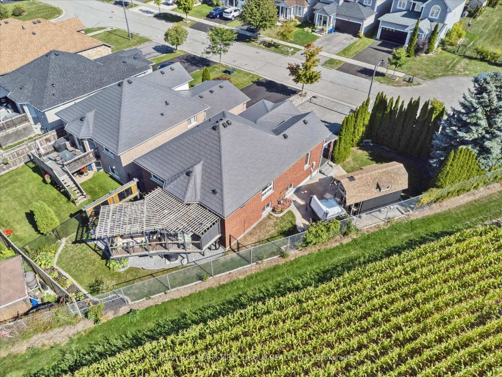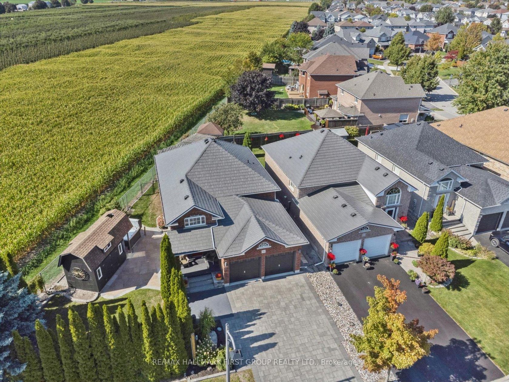 This stunning 2+2 bedroom bungalow sits on a premium 80-foot reverse pie-shaped lot backing onto Watson Farms, offering breathtaking views from nearly every room and all outdoor living spaces. The home boasts sits at the quiet end of the street with beautiful landscaping, a hardscaped 4-car driveway, a front lawn lined with tall cedars for privacy, a durable metal roof, and a two-car garage with direct access from inside the home. Designed for relaxation and entertaining, the yard features a hot tub, a spacious two-tiered deck, and a large shed built on a concrete pad with loft storage. Inside, the smart open-concept layout showcases gleaming hardwood floors, while modern upgrades include a newer furnace, air conditioner, and an owned tankless hot water tank. A fully finished basement extends the living space with two additional bedrooms and a full washroom, making it perfect for families or overnight guests. Combining location, design, and convenience, this home truly checks every box.
