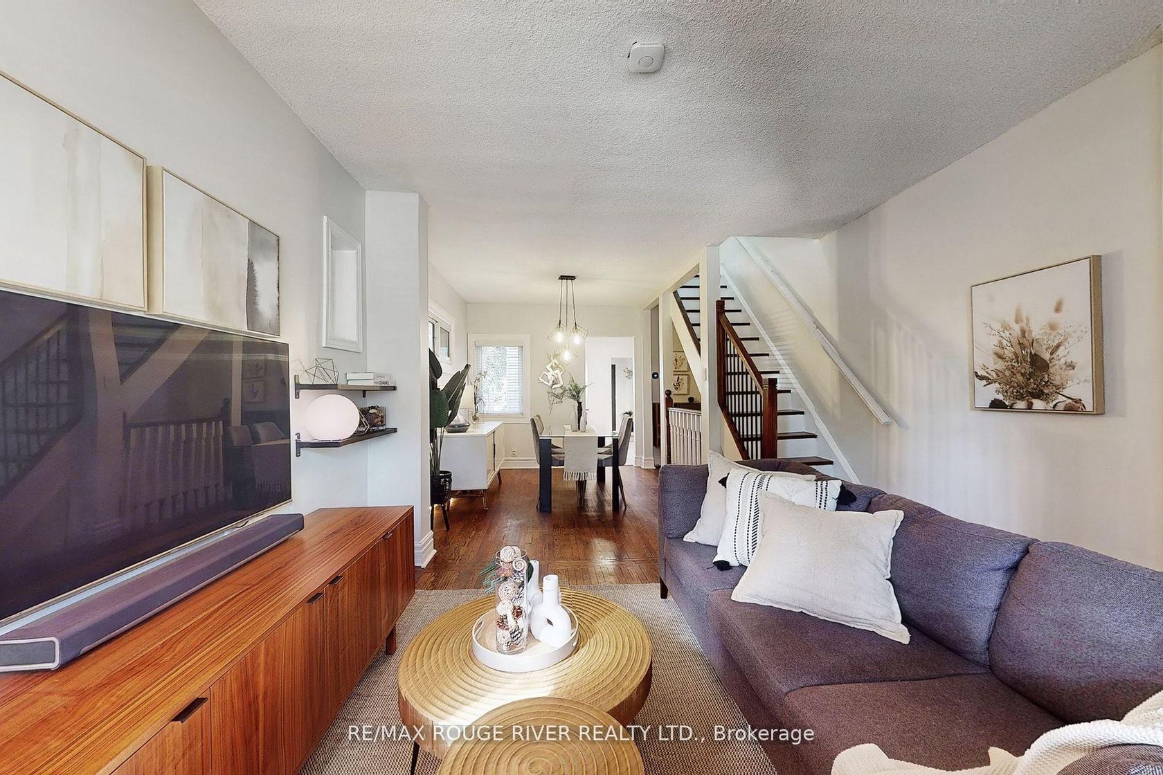 Fabulous 3 bed, 2 bath family home is nestled in the heart of East York's sought-after Woodbine-Lumsden neighbourhood. Updated throughout with tons of character and natural light, this charming and welcoming home is exactly what you are looking for! The main floor offers generous sized living and dining areas that flow into the functional, updated kitchen. A bonus room just off the kitchen offers flexibility, currently used as an office space, walks out to your private backyard and a highly-coveted parking pad!. On the second floor you will find the spacious primary bedroom, 2 more sun-filled bedrooms and a renovated 4pc bath. The finished lower level offers a multifunctional space that blends comfort, entertainment and practicality, complete with a 3pc bathroom, laundry room and storage. The welcoming front porch is perfect for morning coffees and evening cocktails! Nearby green spaces including Taylor Creek park and Stan Wadlow park and community hubs provide lots of ways to enjoy the outdoors with walking/cycling trails, splash pads, sports field, skate park, off-leash dog area just to name a few! Conveniently located close to schools, public transportation, vibrant shops and restaurants of The Danforth. This lovely home will not disappoint and once you experience the quiet, vibrant close-knit community feel you will want to make 512 Main St home!