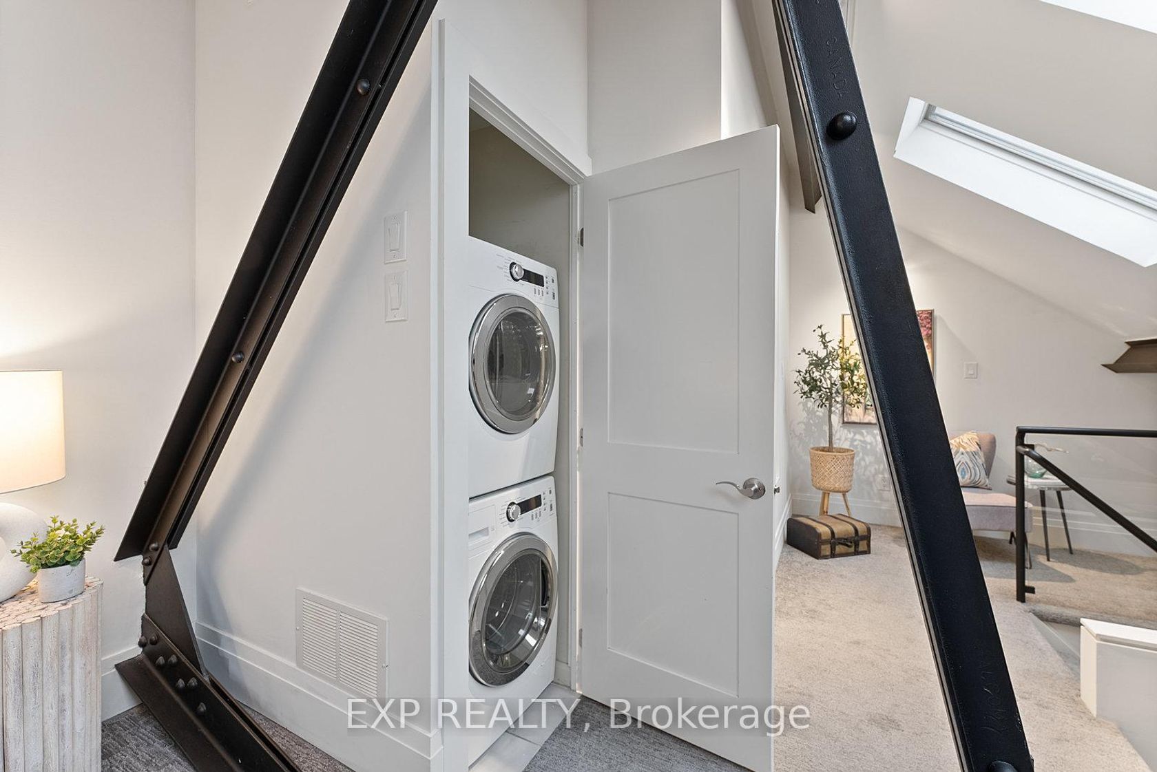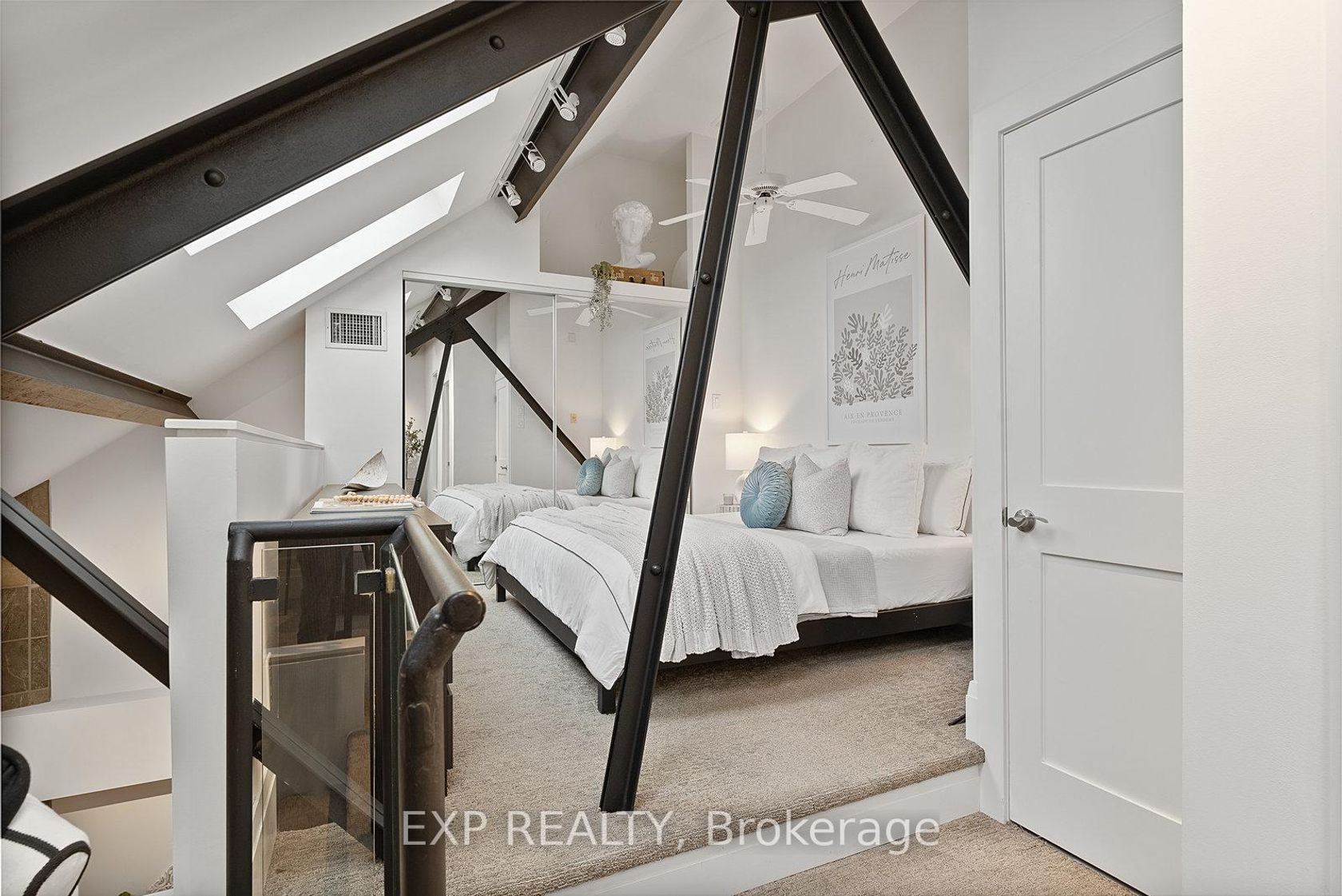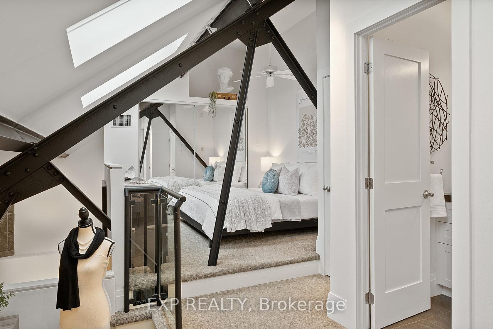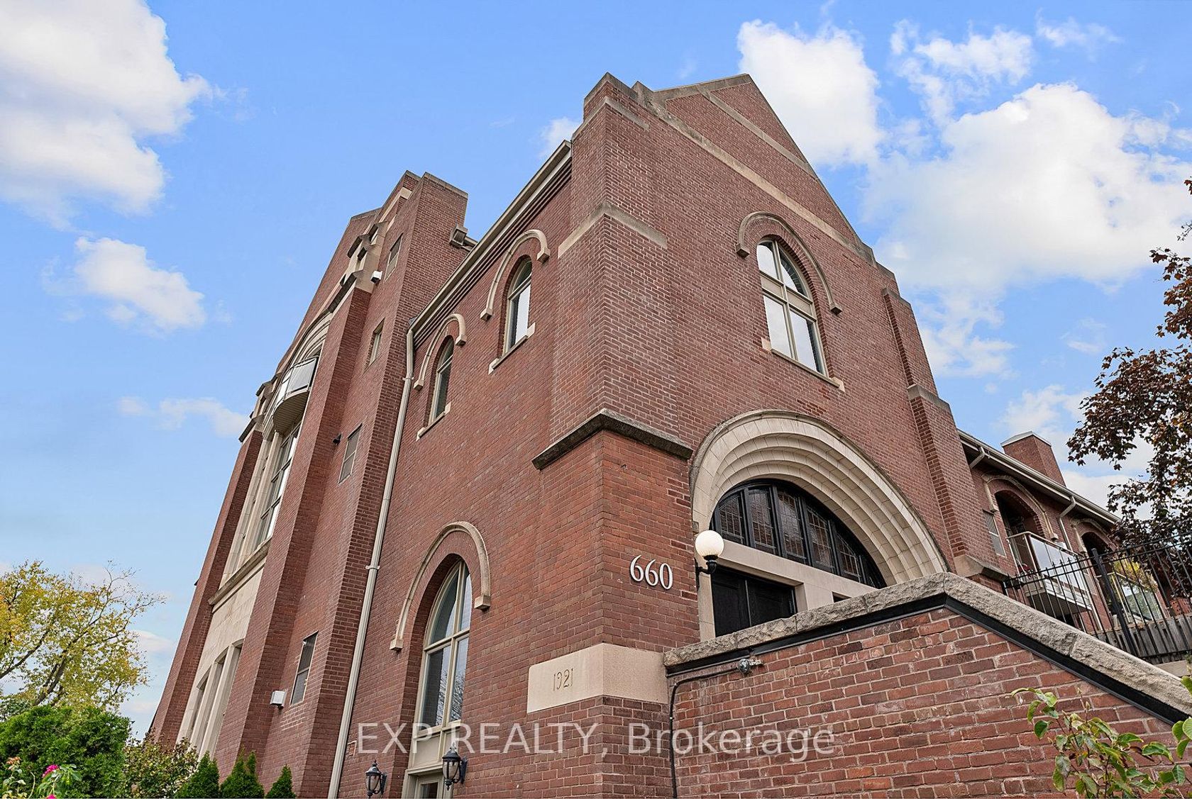 Welcome to The Glebe Lofts, where architectural history and modern sophistication converge. This is your opportunity to own the crown jewel residence within one of Toronto's most admired church conversions - the only unit positioned atop the building's southernmost point, framed by authentic Gothic Revival archways that echo the grandeur of the building's ecclesiastical past. Step inside this two-storey sanctuary of design and experience a seamless harmony between heritage and contemporary living. Soaring 18-foot cathedral ceilings, exposed steel beams, and a spacious open-concept layout define the home's dramatic interior, balancing function and artistry in perfect measure. Spanning over 1,200 square feet, the main level offers an expansive and light-filled living area anchored by the building's original structural elements - a rare blend of architectural integrity and modern comfort. The balcony, framed by the church's preserved archways, provides a breathtaking southern vista overlooking mature treetops and the storied streets of North Riverdale, with the Toronto skyline shimmering in the distance - a symbolic dialogue between old and new. Ascend to the lofted primary suite, a serene retreat overlooking the living space below. The upper level features generous storage, two versatile dens, and a beautifully appointed four-piece bath, offering both practicality and elegance. This exclusive residence also includes two underground parking spaces, a rare privilege within the Glebe Lofts. Perfectly situated just steps from Pape Station, this address offers effortless access to the best of Riverdale's vibrant community - Danforth boutique shops, celebrated restaurants, excellent schools, and lush parks. Whether you're a discerning downsizer, an inspired professional, or an admirer of architectural significance, this one-of-a-kind residence invites you to live within a piece of Toronto's history - where every arch, beam, and detail tells a story.
