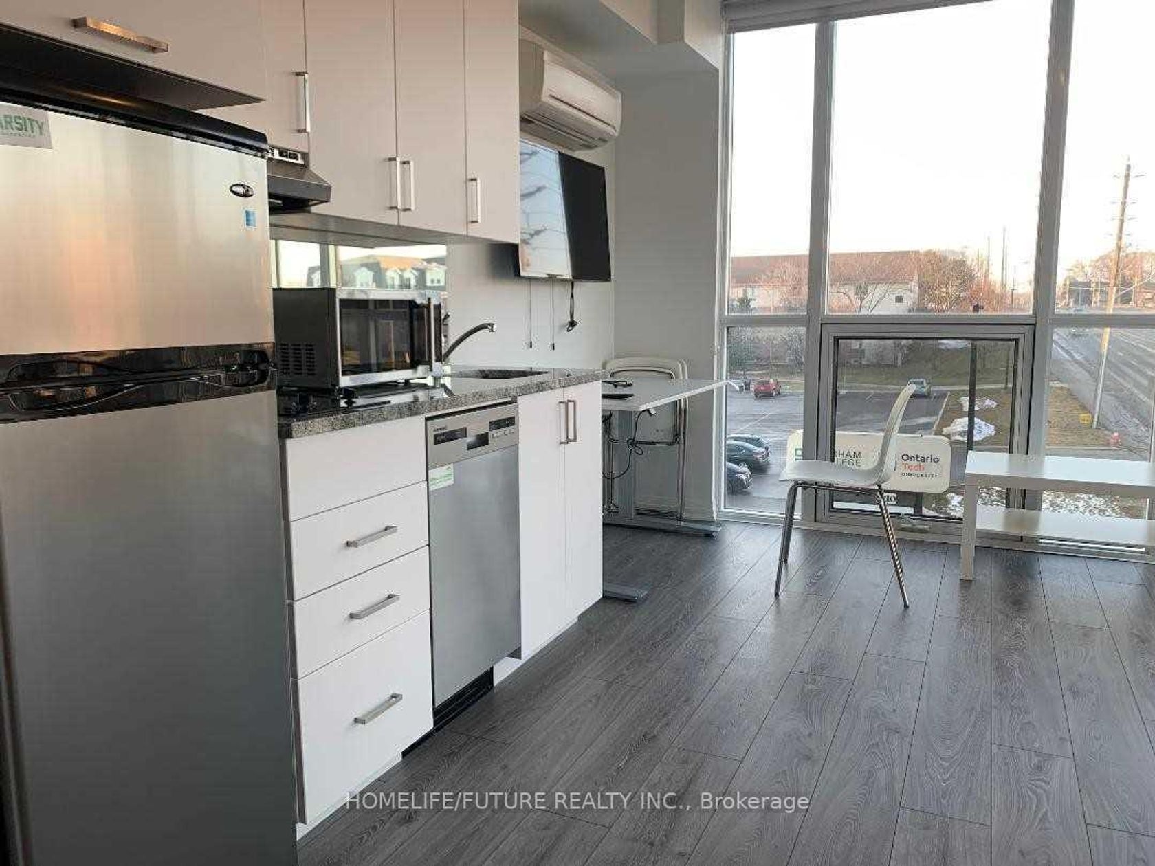 Spacious, Bright, And Fully Furnished Studio Ideal For Students, Professionals, Downsizers, And Seniors. This Well-Appointed Home Features A Large Accessible Washroom With An Automatic Door, Quality Finishes, A Modern Cooktop, Stainless Steel Appliances, And In-Suite Laundry.Perfectly Located Just Steps From Ontario Tech University And Durham College, With Easy Access To Public Transit, Highway 407, Restaurants, Parks, Costco, And The New Windfields Farm Mall.Building Amenities Include A Fully Equipped Fitness Centre, Party Room, Meeting Room, Outdoor BBQ Area, And Electric Vehicle Charging Stations. This Unit Is One Of The Largest Studio Layouts Available In The Building.