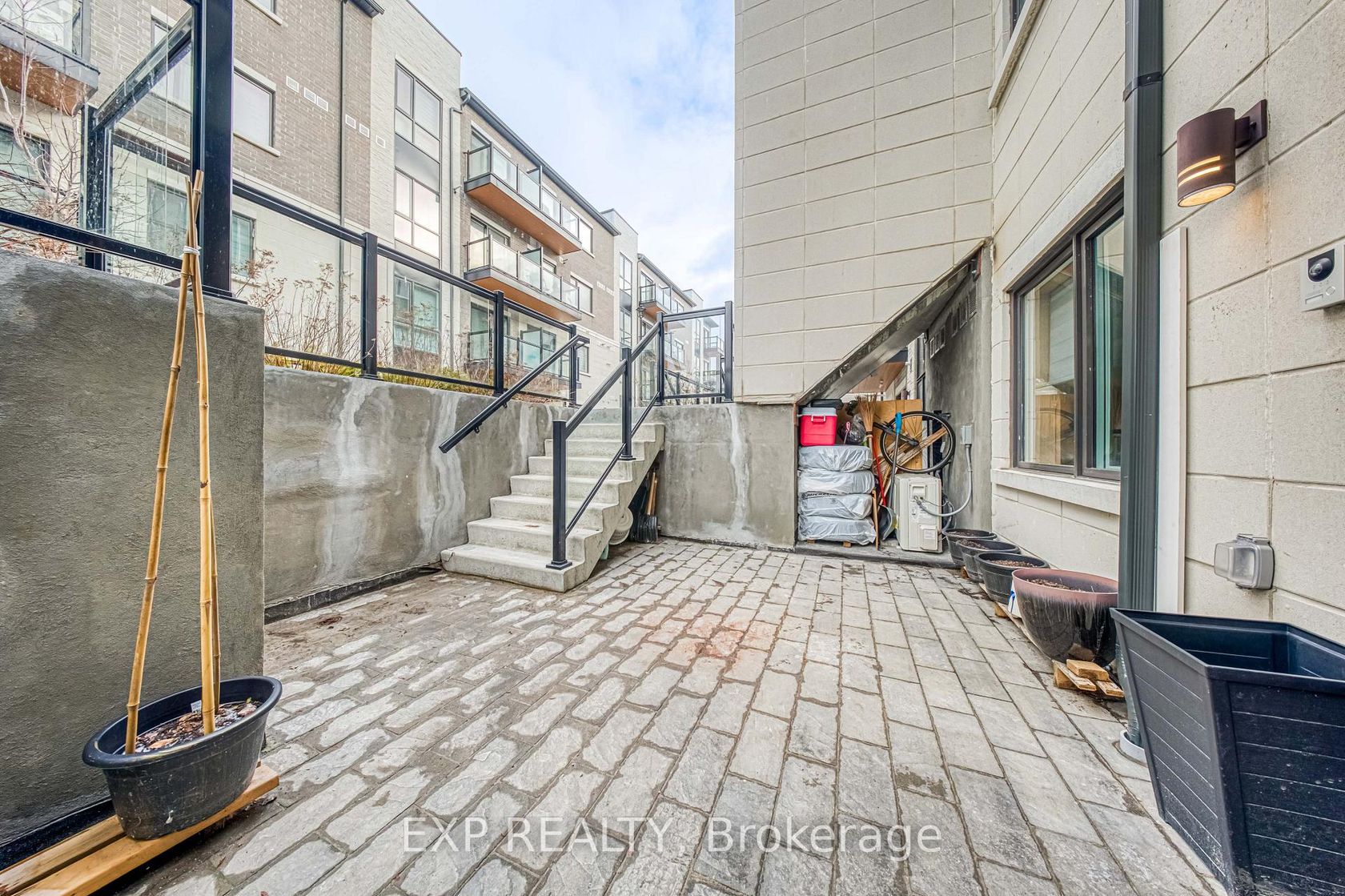 Welcome to a bright, spacious ground-level Victoria Garden townhouse in the heart of L'Amoreaux, where comfort, community, and modern living come together.This thoughtfully designed 2-bedroom + large den, 2-bathroom home offers true one-level living with no stairs inside the unit - perfect for first-time home buyers, young families, downsizers, or anyone who values open, accessible design. Step into a spacious 9-foot ceiling, open-concept layout that blends kitchen, dining, and living spaces seamlessly. The modern kitchen features a quartz island, matching quartz countertops, and stainless-steel appliances - ideal for cooking, gathering, and entertaining.The den is large and versatile (comes with a big closet) - perfect as a third bedroom, nursery, or home office. The primary bedroom offers a walk-in closet and a 3-piece ensuite, while the second bathroom is tucked away for guest convenience. Both bathrooms feature elegant quartz-top vanities, adding a cohesive, upscale touch throughout.Enjoy two private patios with east and west exposure for morning coffee, evening BBQs, or container gardening. Additional comforts include two entrances, new blinds, and a suite cared for by the original owners - never rented, showing pride of ownership throughout.Residents enjoy a lush, landscaped complex with a kids' playground, modern gym, party room with full kitchen, and underground parking with EV charging stations - designed for today's families.Located in L'Amoreaux, one of Toronto's most established and connected neighbourhoods, you're minutes from Highways 401, 404 , 407 & DVP, TTC, Seneca college, parks, community recreation, restaurants, schools, T&T Supermarket and shopping at Bridlewood Mall and Fairview Mall, North York General Hospital. Don't miss the opportunity to own in this thriving community. Bright, modern, and beautifully maintained - this home blends style, function, and family warmth in one perfect package.