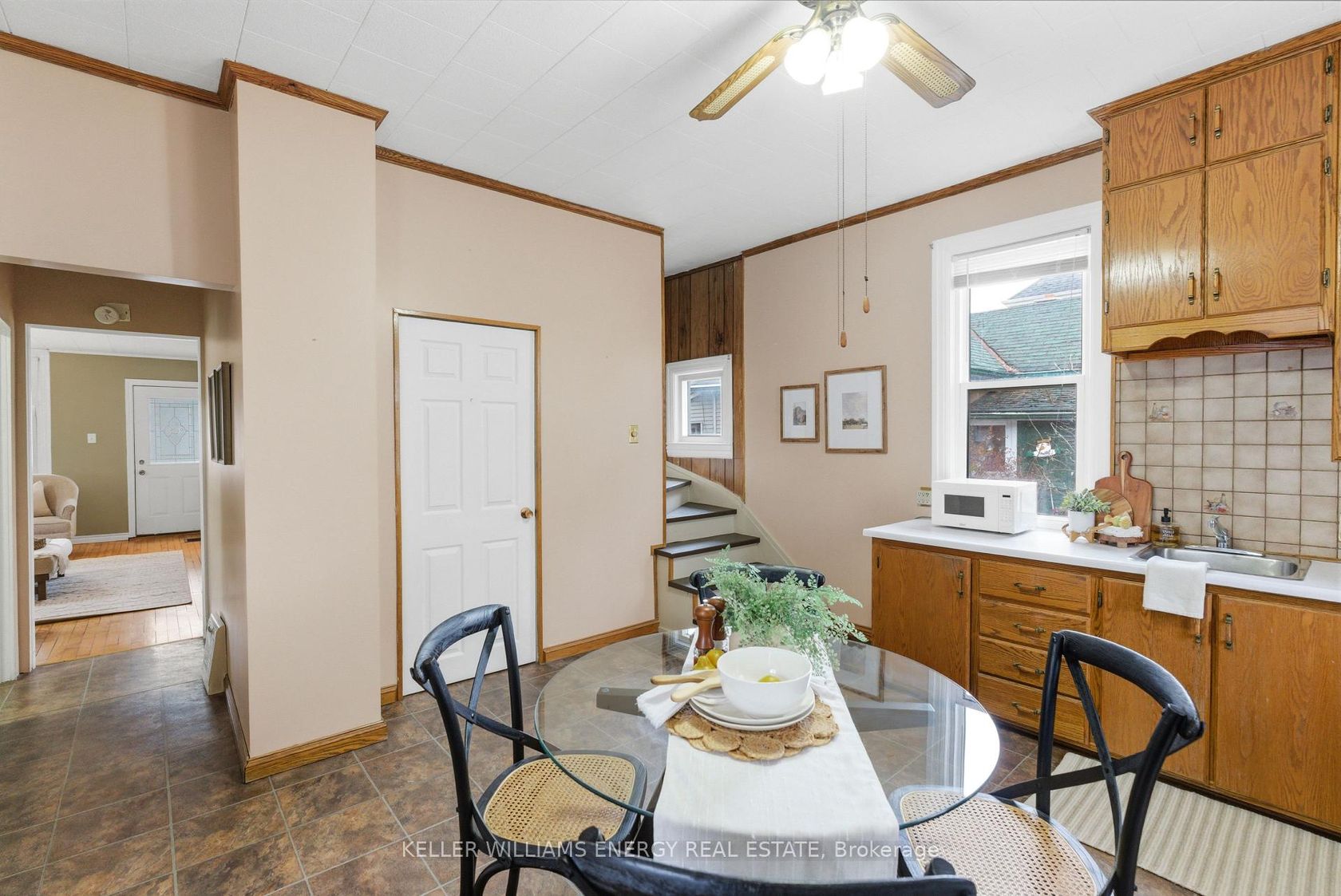 Discover The Potential In This Charming Home, Perfectly Situated On An Oversized 206 Ft Deep Lot In A Convenient Central Location! The Main Floor Welcomes You With Hardwood Flooring, A Bright & Airy Living Room, A Main Bathroom, And Two Bedrooms Featuring Impressive 9-Foot Ceilings. At The Back Of The Home, The Large Eat-In Kitchen Offers Ample Cabinetry, Tile Flooring, 9-Foot Ceilings, And Direct Access To A Breezeway That Leads To The Deck And Expansive Backyard, Ideal For Everyday Living And Entertaining. Upstairs, You'll Find Two Additional Light Filled Bedrooms With Updated Vinyl Flooring Throughout. This Level Was Refreshed In 2024 With New Vinyl Flooring And Refinished Walls And Ceilings, Adding A Clean, Modern Touch. The Full Height, Unfinished Basement Provides Excellent Storage Space. Outside, The Backyard Includes A Detached Garage With Electricity, A Storage Shed, Mature Trees And Plenty Of Room To Enjoy. A Charming Front Porch Completes The Home, Perfect For Sipping Your Morning Coffee. Located Close To Grocery Stores, Shopping, Schools, Transit, And The 401, This Home Offers Both Convenience And Opportunity. Don't Miss Your Chance To Make This Home Your Own! EXTRAS: Upstairs Ceiling & Walls Refinished (2024), All Upstairs Flooring (2024).