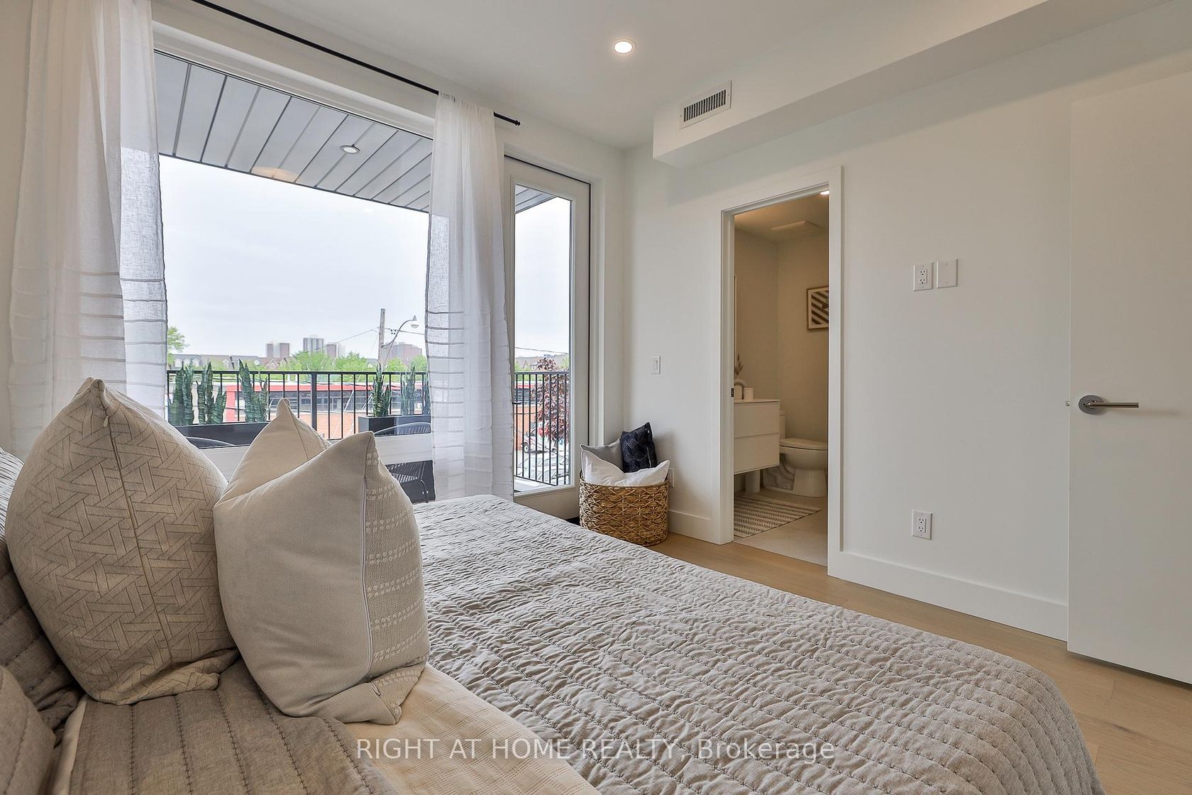 An astounding residence in a rare boutique building - imagine your very own full-floor home, providing over 1,100 square feet of interior space with TWO terraces (one with bbq connection). Filled with natural light, this carefully designed and beautifully built home includes exceptional details throughout, a custom kitchen with integrated Fisher & Paykal appliances, gas cooktop, stylish eat-at island and an oversized living room / dining room perfect for daily living and great entertaining. 2 full bedrooms including a primary with decadent ensuite bathroom and huge walk-in closet. Exceptional space, designed and built to the highest standards with advanced acoustic insulation, oversized windows, individual heating and cooling and enormous ensuite storage. The style and simplicity of a condo, with the space and comforts of a traditional home! Low maintenance living, moments to the subway, nearby shopping, parks, schools and of course Kingston Road Village. Never lived in, with a full tarion warranty.