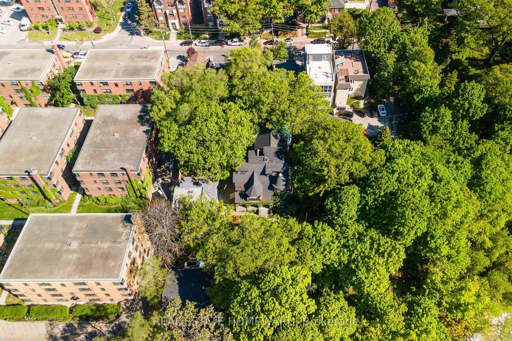 Own your own castle in the city!!! Rare 7-unit investment property with exceptional character and history, located in the Beaches and overlooking Lake Ontario. Known as Chateau de Quatre Vents (Castle of the Four Winds), this landmark was designed by the architect of Casa Loma and Old City Hall. The home has been converted into 7 self-contained suites, each with separate hydro. Three units are currently rentable; four units are under renovation with plumbing and electrical completed, ready for finishing. The layout includes five 2-bedroom and two 1-bedroom suites, with projected gross income of approximately $350,000 annually once completed. Although the civic address is Queen Street, the house is set back over 100 feet from the street on a bluff facing the lake, with sweeping views from most principal rooms. Access is from a walkway off Queen Street or via a winding driveway from Rockaway Crescent. The property is subject to a Heritage designation under the Ontario Heritage Act. Irregular lot buyer to verify lot dimensions and lot lines. Being sold under Power of Sale in as-is, where-is condition without representation or warranty from the Seller. Do not walk the property without an appointment.