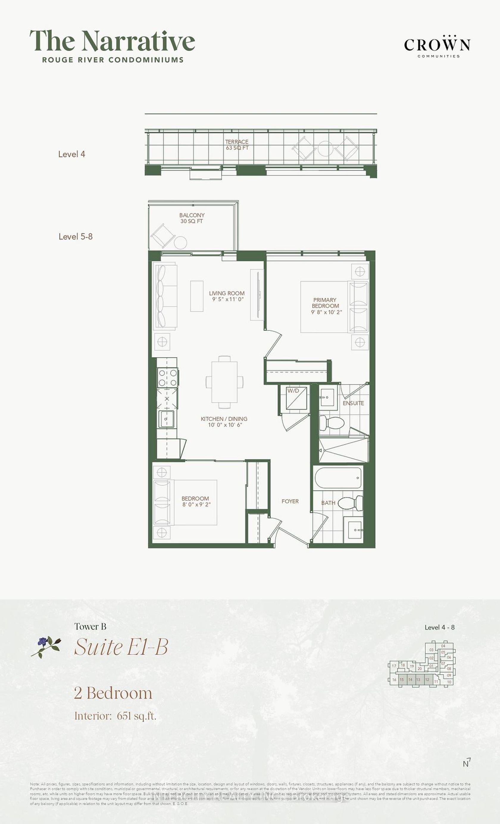 Welcome to The Narrative Condos, located in the highly sought-after Rouge community of Toronto. Presenting the stunning E1B model: a brand new 651 sq. ft. 2-bedroom, 2-bathroom condo complete with parking and a storage locker, right in the heart of Rouge!Your quest for the ideal combination of city convenience and natural beauty ends here. This modern luxury suite offers an upscale living experience, surrounded by serene ravines, lush parks, scenic nature trails, and the beautiful shores of Lake Ontario-all while being just minutes away from Highways 401 and 407, TTC and GO Transit, as well as vibrant shopping areas, banks, healthcare facilities, and everyday necessities.Enjoy exceptional building amenities, including a wellness center with weight and cardio equipment, a yoga studio, a children's play area, a party room, a games room, and an outdoor terrace equipped with BBQs
