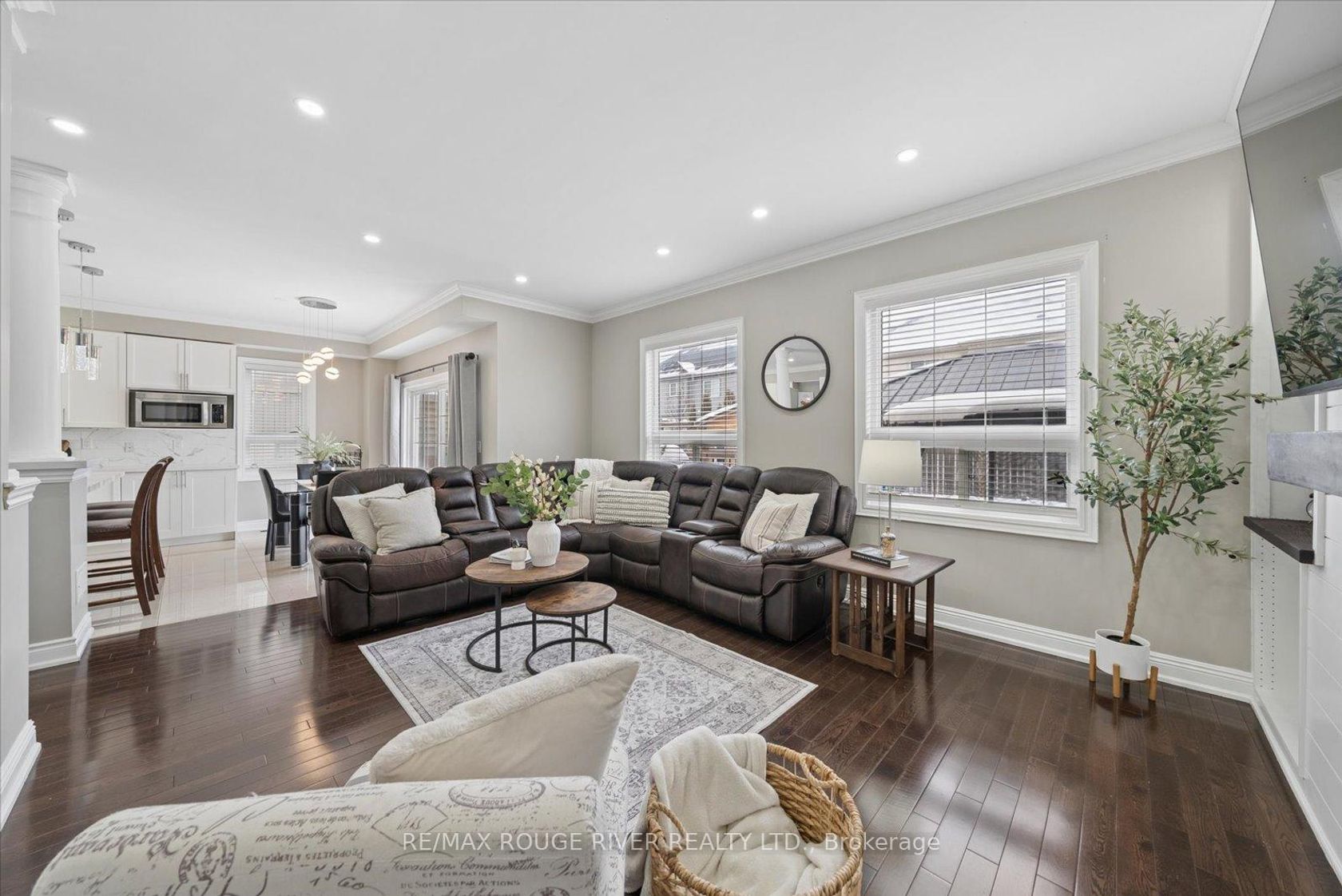 Welcome to Liberty Crossings, one of North Bowmanville's desired family neighbourhoods. This impressive 5-bedroom, 3-bathroom residence offers 2,721 sq. ft. of meticulously maintained living space designed for comfort, functionality, and style. The main floor features a bright, spacious front foyer, 9-ft ceilings, pot lights, and rich hardwood flooring throughout. A main floor laundry room with direct garage access adds everyday convenience. The upgraded eat-in kitchen is the heart of the home, complete with quartz countertops, upgraded stainless-steel appliances, tons of cabinetry, flowing seamlessly into the inviting family room. Here, a gas fireplace with custom built-in cabinetry creates the perfect atmosphere for both relaxation and entertaining. The upper level showcases five generously sized bedrooms, ideal for growing families or those needing extra office or guest space. The primary retreat offers a quiet escape, featuring a large walk-in closet and a spacious 5-piece ensuite. The beautifully renovated second bathroom includes double sinks and a modern glass shower, providing both luxury and practicality for busy mornings. An additional bedroom with its own private balcony adds a rare and charming architectural touch. The double car garage offers excellent storage capabilities, making this home as functional as it is elegant. Perfectly situated within walking distance to schools, parks, shopping, dining, and essential amenities, with everything conveniently located within 1 km. This is a prime opportunity to secure a spacious family home in a highly sought-after community.