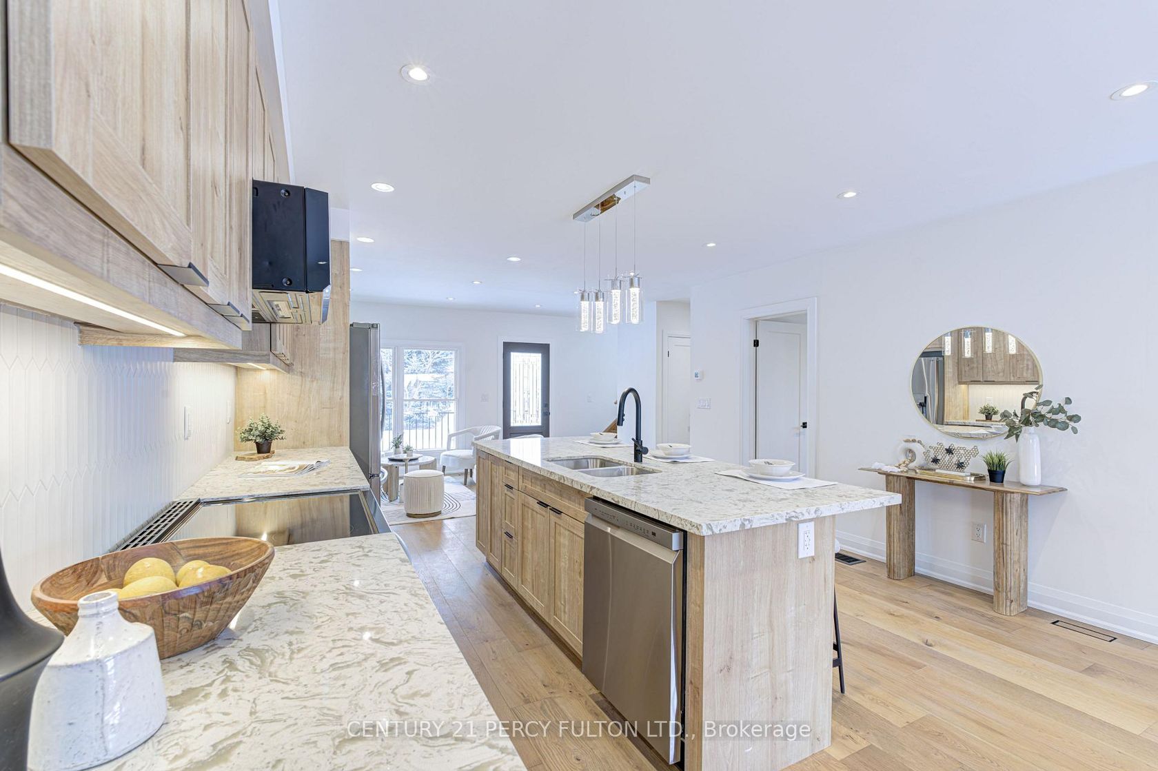 Beautifully upgraded 4-bedroom home, offering a bright, open-concept layout designed for modern living. Soaring ceilings in the living and dining area create a bright, open feel throughout the main floor, enhancing the sense of space and natural light while providing an inviting setting for both everyday living and entertaining. The fully updated kitchen is the heart of the home, featuring custom cabinetry, stone countertops, stainless steel appliances, and a large centre island with seating, perfect for hosting family and guests. The open layout flows seamlessly into the living area, highlighted by a modern feature wall and fireplace that adds warmth, style, and character to the space. The main floor den offers flexibility for a home office, guest room, or additional bedroom. Thoughtfully finished throughout with quality upgrades, the home offers a functional layout that balances comfort and design. The upper level features three generously sized bedrooms, including a spacious primary suite complete with its own private ensuite, along with an additional full washroom for added convenience. A separate entrance leads to a finished basement bachelor suite complete with a full washroom and its own separate laundry, offering excellent flexibility for extended family, in-law use, or additional living space. A move-in ready home that combines thoughtful upgrades, functional design, and versatile living.