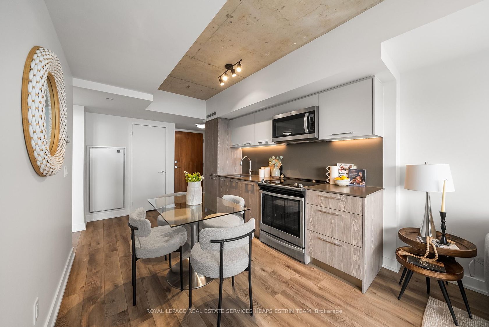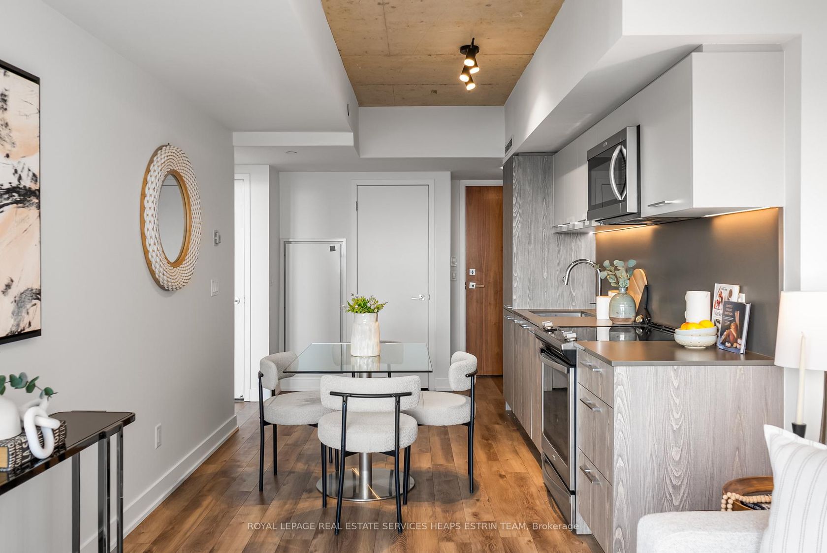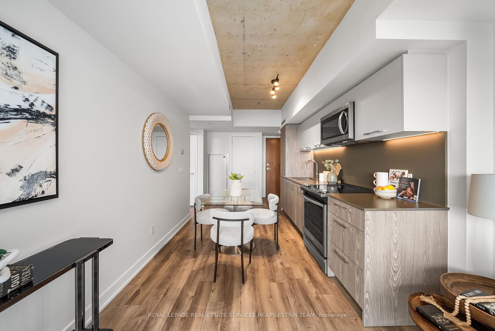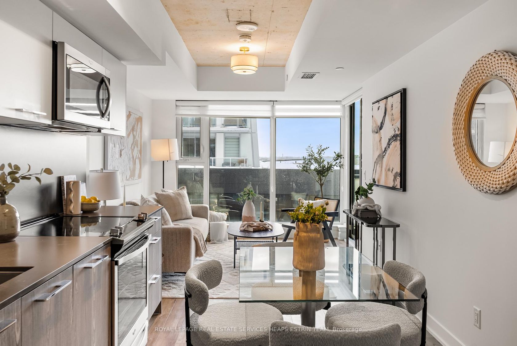 Experience the charm of refined urban living in the heart of Riverside. Perfectly positioned between Leslieville, Riverdale, and Corktown, this thoughtfully appointed one-bedroom, one-bathroom residence - with underground parking and storage locker - offers a seamless blend of style and everyday ease. The suite is designed for comfort and functionality, with an open-concept living and dining space that flows effortlessly, creating a welcoming atmosphere for both quiet evenings and intimate gatherings. Clean lines and contemporary finishes provide a modern backdrop, complemented by a well-proportioned layout that maximizes usable space. Beyond your front door, the building offers an impressive collection of amenities, including a rooftop terrace with an outdoor pool and sweeping views of the downtown skyline - a serene escape above the city. Residents also enjoy a fully equipped fitness centre, an elegant lounge, billiards room, and 24-hour concierge service. Located just steps from TTC streetcars and the DVP ramp, commuting downtown is effortless. Enjoy weekends exploring Riverside's beloved cafés and boutiques, including Dark Horse, Boxcar, and Marmalade, or take in sunset views from Riverdale Park and the iconic Broadview Hotel rooftop. An exceptional opportunity to call one of Toronto's most vibrant east-end communities home.