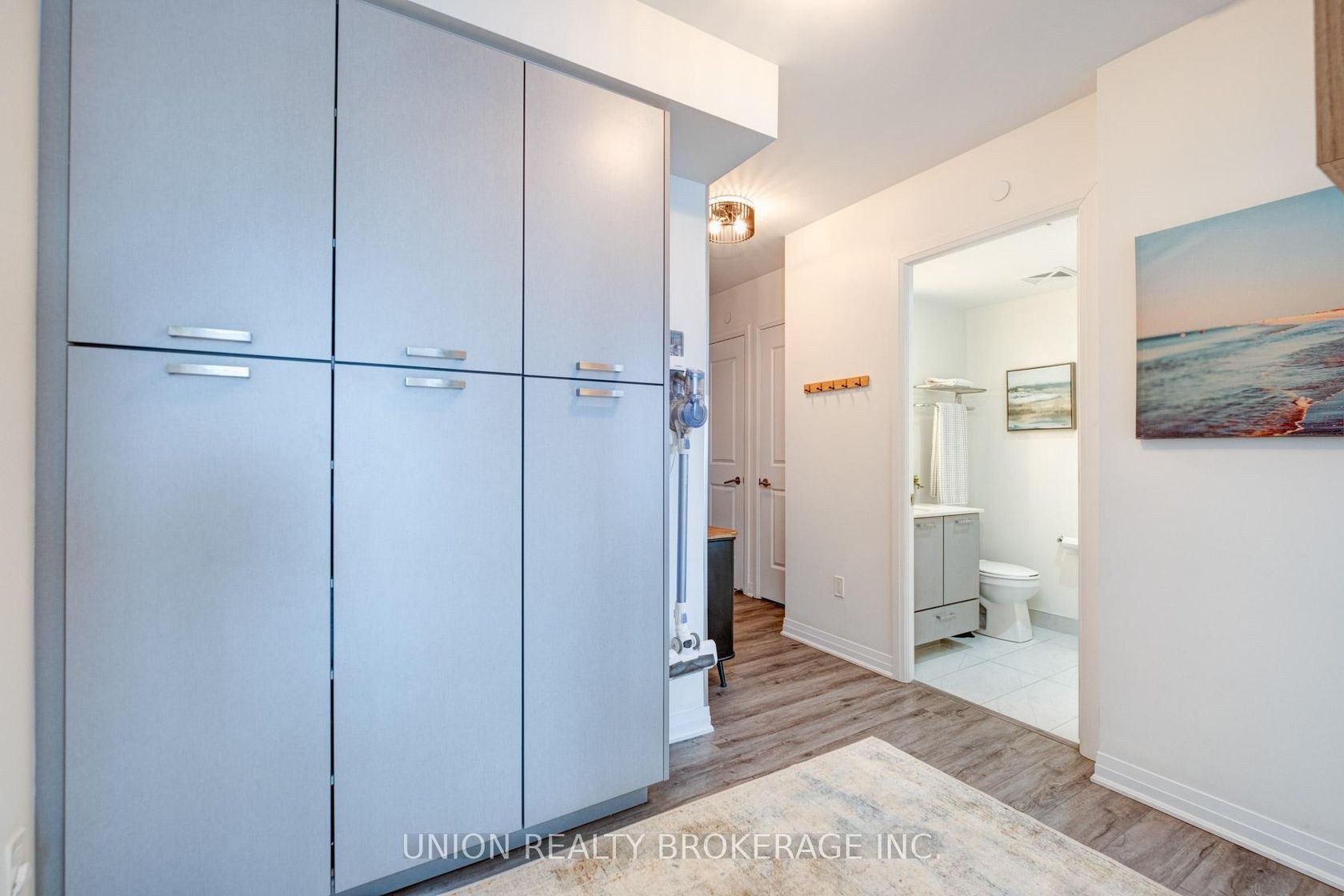 Welcome to this bright and spacious 2 bedroom, 2 bathroom corner suite at Canvas Condos, offering over 800 sq ft of thoughtfully designed living space with a functional split bedroom floor plan for optimal privacy. Featuring 9 ft ceilings and floor to ceiling windows, the open-concept kitchen, living, and dining area is filled with natural light, creating the perfect setting for both everyday living and entertaining. The kitchen is enhanced with a custom pantry, while both bedrooms feature California Closets, including a walk-in closet and private ensuite in the primary bedroom.This well appointed home includes a storage locker and access to boutique amenities including concierge, gym, rooftop terrace, party room, and visitor parking. Ideally located between Main and Woodbine, just steps to transit, GO Train, subway, parks, shops, and everyday essentials. Rarely offered, 2 bedroom suites in this building present a fantastic opportunity to enjoy stylish, connected urban living in a vibrant neighbourhood.