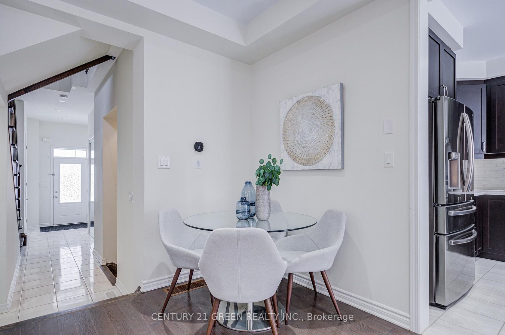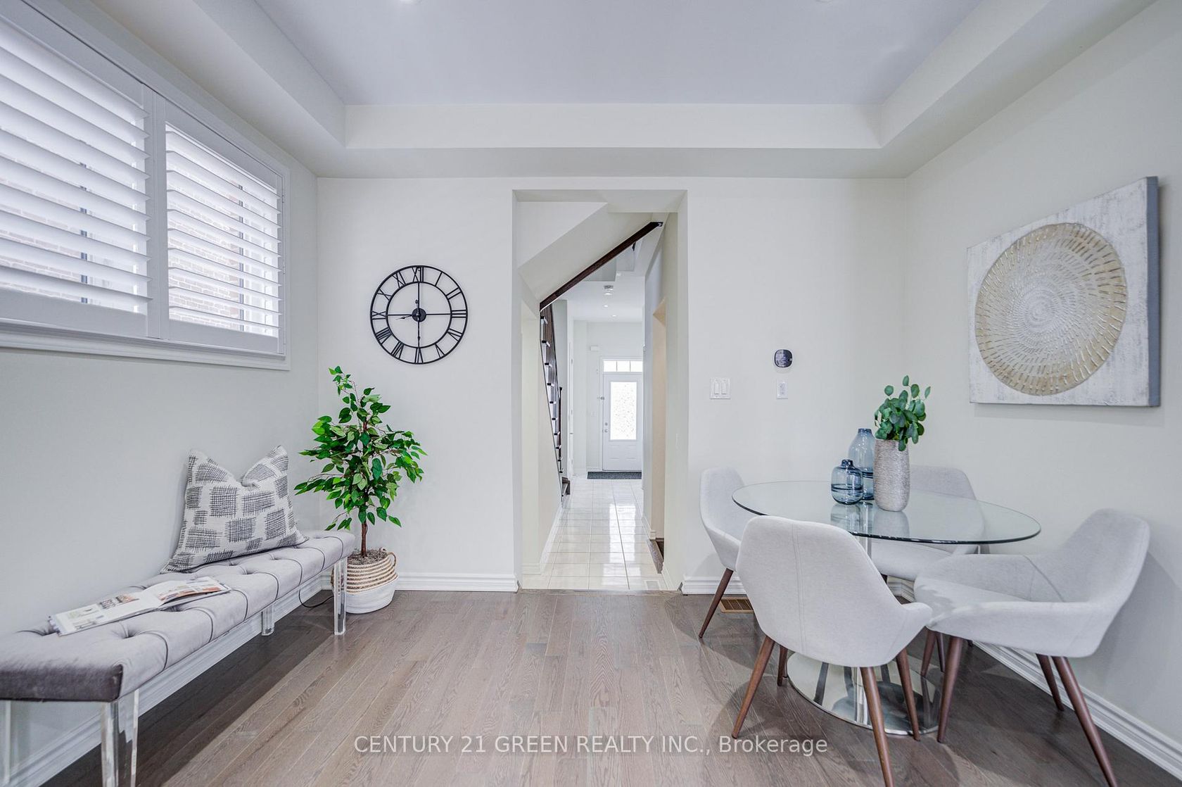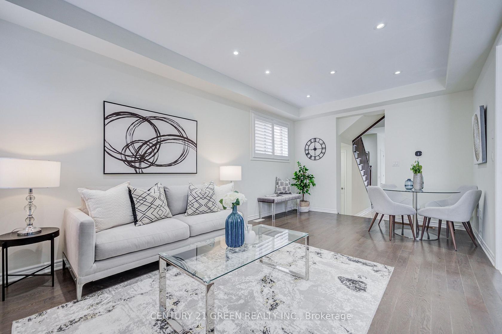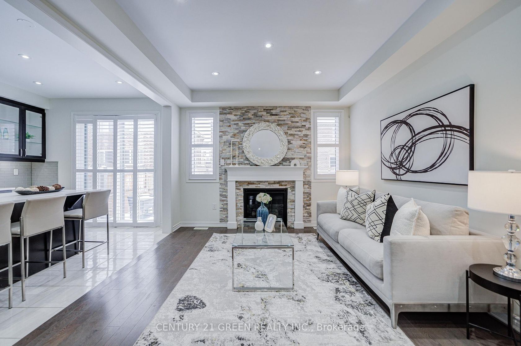 Stunning 5-year-old freehold end-unit townhome in the highly desirable Queens Common community, Whitby. A bright living space, feels like a semi-detached, loaded with $50K+ in upgrades. Spacious 3 bedrooms & 3 bathrooms, 2 bedrooms with walk-in closets, primary with 5- pc ensuite. Quartz countertops in kitchen & bathrooms, modern kitchen with stainless steel appliances, Bosch ultra-silent dishwasher, 850 CFM range hood, deep pantry cabinets, spice rack, under-mount lighting & glass cabinet bar setup. Smooth ceilings, pot lights throughout incl. porch, upgraded hardwood floors, California shutters, gas fireplace, elegant TV wall stonework. Upper-floor laundry with upgraded cabinets & linen closet. Cold room, humidifier, gas line to kitchen, garage door opener. Private driveway & built-in garage. POTL covers snow removal, garbage & common area maintenance. Steps to Whitby Health Centre, bus stop & pharmacy. Minutes to 412/401, GO Station within 10 mins, top-rated schools. New fire station coming nearby for added safety, plus upcoming banks, retail & daycare within walking distance. Book your showing Today!!