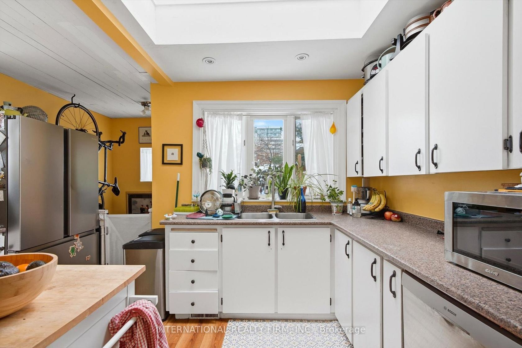Walk to the Subway!Light-filled open-concept home. Featuring 2 bedrooms, spacious separate living and dining rooms with gas fireplace, and hardwood floors throughout.The sunny kitchen offers full-size stainless steel appliances, overlooking backyard.Upper level 3pc bathroom has heated floors and a glass shower wall.Recroom, Laundry and 3pc bathroom in the basement.Rare opportunity for 2-car parking at the end of the lane.Conveniently located close to all amenities, shops, restaurants, and transit.