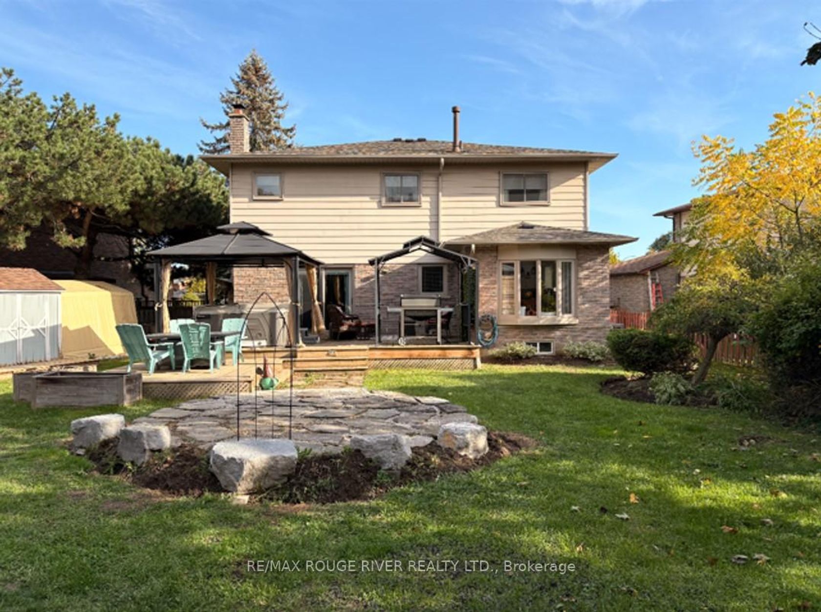 Welcome to this beautifully updated and meticulously maintained family home, situated on a large pie shaped lot, where quality craftsmanship and thoughtful upgrades are evident throughout. Featuring crown moulding, wainscoting, laminate flooring, flat ceilings, and pot lights both inside and out, this home offers a refined yet comfortable living experience. Step inside to a bright main level showcasing a welcoming living room with French doors and a charming bay window overlooking the front yard. The separate formal dining room provides an elegant space for hosting family gatherings. The beautifully renovated kitchen features quartz countertops, a breakfast bar, new appliances, an eat-in area with bow window, and walkout to the backyard, seamlessly blending style and function. The adjacent family room offers a cozy fireplace and an additional walkout to the yard, perfect for everyday living and entertaining alike. A convenient main floor laundry room adds everyday practicality and ease. Upstairs, new carpet on the stairs and hallway adds warmth and comfort. The spacious primary bedroom features a walk-in closet and a fully upgraded four-piece ensuite bathroom. Three additional generously sized bedrooms each offer large closets and bright windows, providing ample space for a growing family. Additional upgrades include renovated bathrooms, updated light fixtures, blinds within the kitchen and family room sliding doors, central vacuum, and a new electrical panel for added peace of mind. The exterior has been enhanced with updated fascia and eavestroughs, a new garage door, interlock walkways at the front and side, a stunning flagstone patio, a stone light post, and a custom address sign above the garage, creating exceptional curb appeal. A spacious deck with gazebo and a gas barbecue hookup make outdoor entertaining effortless. This exceptional home combines timeless finishes, modern updates, and inviting indoor-outdoor living, making it the perfect place to call home.