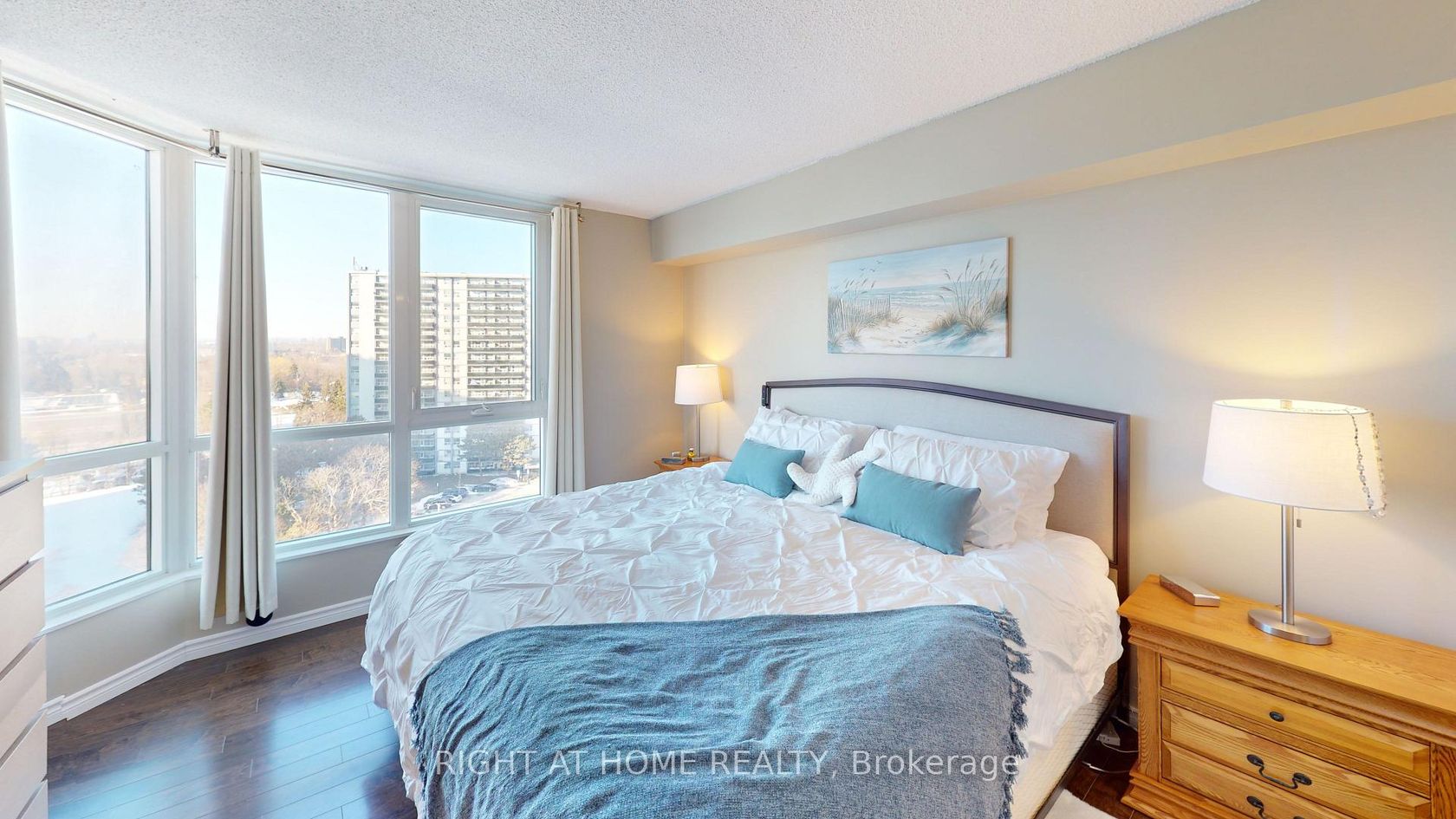 Beautifully cared-for 2 bedroom + solarium, 2 full bathroom condo offering approximately 1,184 sq ft of bright, open-concept living and stunning west-facing views of the Toronto skyline and sunsets. Freshly painted and featuring a recently updated kitchen and new quality windows, this move-in ready suite blends comfort, space and everyday practicality. The spacious living and dining areas are filled with natural light and flow seamlessly into a versatile solarium-perfect for a home office, sitting room, or a bright reading space. The generous primary bedroom easily accommodates a king-size bed and includes a large 4-piece ensuite. A well-proportioned second bedroom offers flexible space for guests, family, or a quiet work-from-home retreat. Includes 1 underground parking space and a large private locker for valuable additional storage. Residents enjoy a well-managed, community-oriented building with 24-hour concierge/security and on-site property management. Extensive amenities include an indoor pool, men's and women's saunas, fully equipped gym, indoor squash/basketball court, library/study space, party room and community BBQ areas. There is a small playground for the children and an outdoor tennis court. An active social committee helps foster a welcoming atmosphere. Conveniently located on TTC routes, close to schools, shopping, dining and everyday conveniences. A wonderful opportunity to own a bright, spacious condo in a building where pride of ownership truly shows.