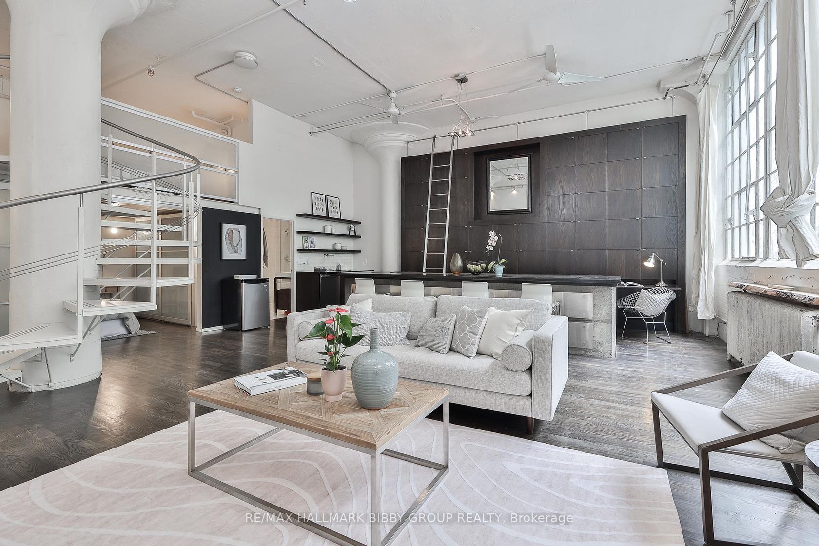 This Is Your Opportunity To Own A Piece Of History In Leslieville's Most Sought-After Loft Conversion - The Intimate Wrigley Lofts! Originally The Wrigley Chewing Gum Factory And Converted In 1998, The Loft Offers 1150 Meticulous Interior Square Feet. The Two-Bedroom Residence Provides A Unique Quality Of Life And Showcases Dramatic Original Industrial Finishes Throughout. The Well-Defined Principal Rooms Feature Soaring 13.6'-Foot Ceilings And Are Designed For Seamless Entertaining On Any Scale. The Modern Kitchen Features Full Height Custom Millwork Offering Ample Storage. The Kitchen Also Features A Large Center Island With A Convenient Breakfast Bar. The Cozy & Spacious Primary Bedroom Retreat Is Accessed By A Custom Spiral Staircase And Includes A Large Wall To Wall Closet System. The Lower Level Includes A Spacious Second Bedroom Which Is Perfect For Families, Guests Or Those In Need Of An Enclosed Private Studio Or Media Room. The Loft Also Features A Spa-Like Four-Piece Bathroom. Incredible Location As You Have Easy Access To The Shops Of Carlaw, Acclaimed Restaurants Of Queen Street East & Jesse Simpson Recreation Centre. Easy Access To Queen Street Street Car, The Upcoming Ontario Line DVP, Martin Goodman Trail & Tommy Thompson Park.