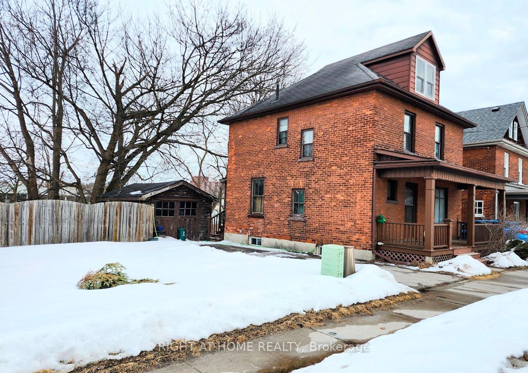 Opportunity awaits in this solid 2.5 storey brick home full of character and potential. Offering space, flexibility, and future possibilities, this property presents exceptional value for buyers ready to update and customize. The second floor features three bedrooms, while the main level offers a functional layout with kitchen, dining, and living areas, plus a convenient walkout to the backyard. The third-floor loft provided a rare and versatile bonus space, ideal for a home office, studio, or creative retreat, an added on feature not commonly found in many houses. An outstanding highlight is the generous lot, including an adjoining parcel measuring approximately 24.76 ft. x 108.83 ft. There may be a potential for severance to create an additional building lot, offering exciting future development possibilities. The seller makes no representations or warranties regarding severance; buyers are responsible for conducting their own due diligence. The private single width driveway accommodates two cars, and a detached garage (requiring significant improvement) adds further utility. Ideally situated in a convenient location within walking distance to the shopping centre, local transit, schools, and downtown amenities. A rare opportunity to secure a property with space, flexibility, and long term upside in a desirable setting.