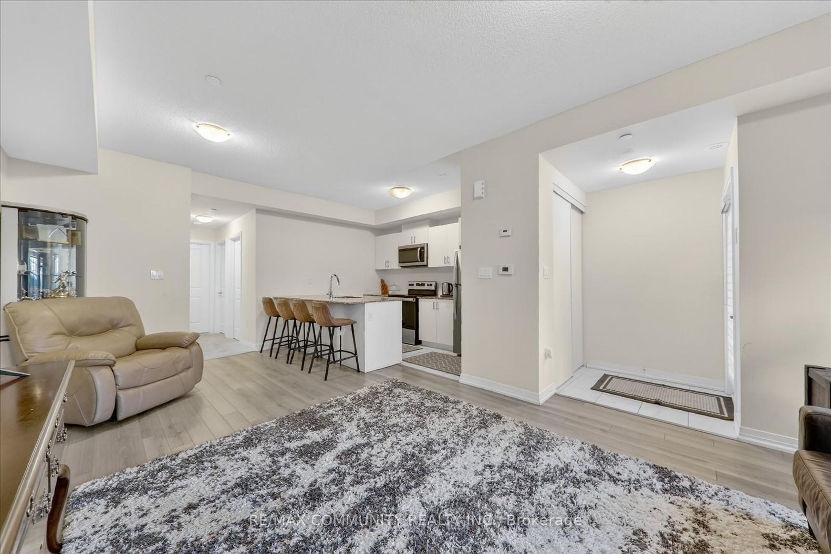 Step into this stunning 2-bedroom stacked condo townhouse in the highly desirable Presto Towns community. This bright, spacious home features a sleek open-concept layout. Perfectly situated in a highly connected and central location. Enjoy close proximity to schools, parks, shopping, and public transit right at your doorstep. A short drive brings you to Highway 401, the University of Toronto, and Centennial College, making this an ideal spot for commuters and students alike. Inside, you'll find two bright and spacious bedrooms, complete with in-suite laundry for added convenience. The open-concept living room, kitchen features granite countertops. and stainless steel appliances, creating a modern and inviting space for everyday living. Experience urban living at its finest, enhanced by low-maintenance amenities, EV charging stations, a park, and your own private sunken patio-perfect for relaxing or entertaining. This unit also includes one owned underground parking space.
