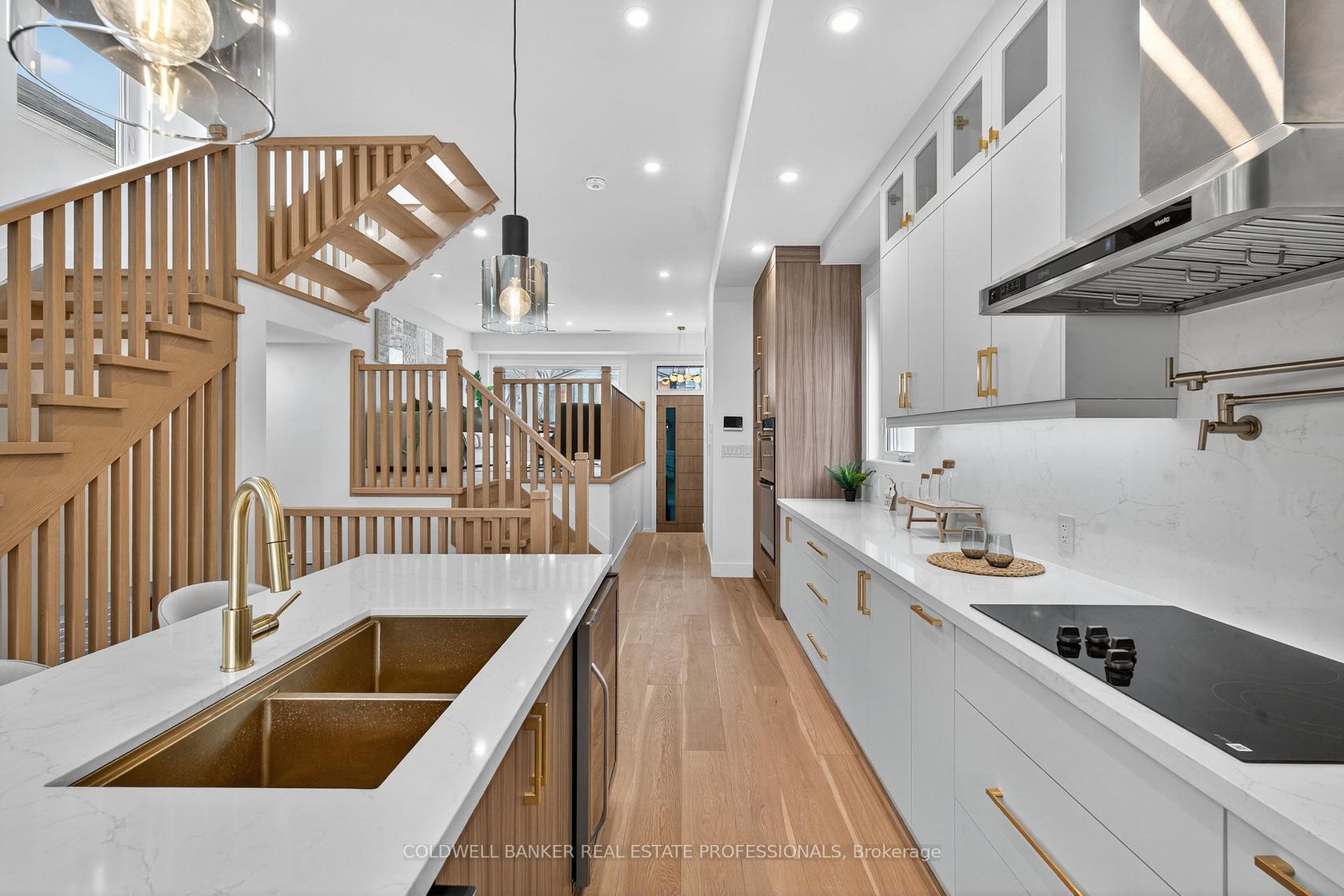 Situated in the heart of East York, Toronto, this high-end residence combines sleek modern design with practical living. The second floor offers four bedrooms, along with both upper-level and basement laundry areas for maximum convenience.At the center of the home is a gourmet kitchen featuring quartz countertop, custom cabinetry, and a quartz island. It opens directly onto a beautifully designed deck, ideal for hosting guests. Inside, the home is elevated by white oak engineered flooring, contemporary light fixtures, wooden railings, and windows + skylight that fill the interior with natural light.The basement is roughed-in to be used as a secondary living suite. Conveniently located near Michael Garron Hospital, R.H. McGregor Elementary, East York Collegiate Institute, and Cardinal Carter Academy for the Arts, this home offers both luxury and practicality in an exceptional neighbourhood.