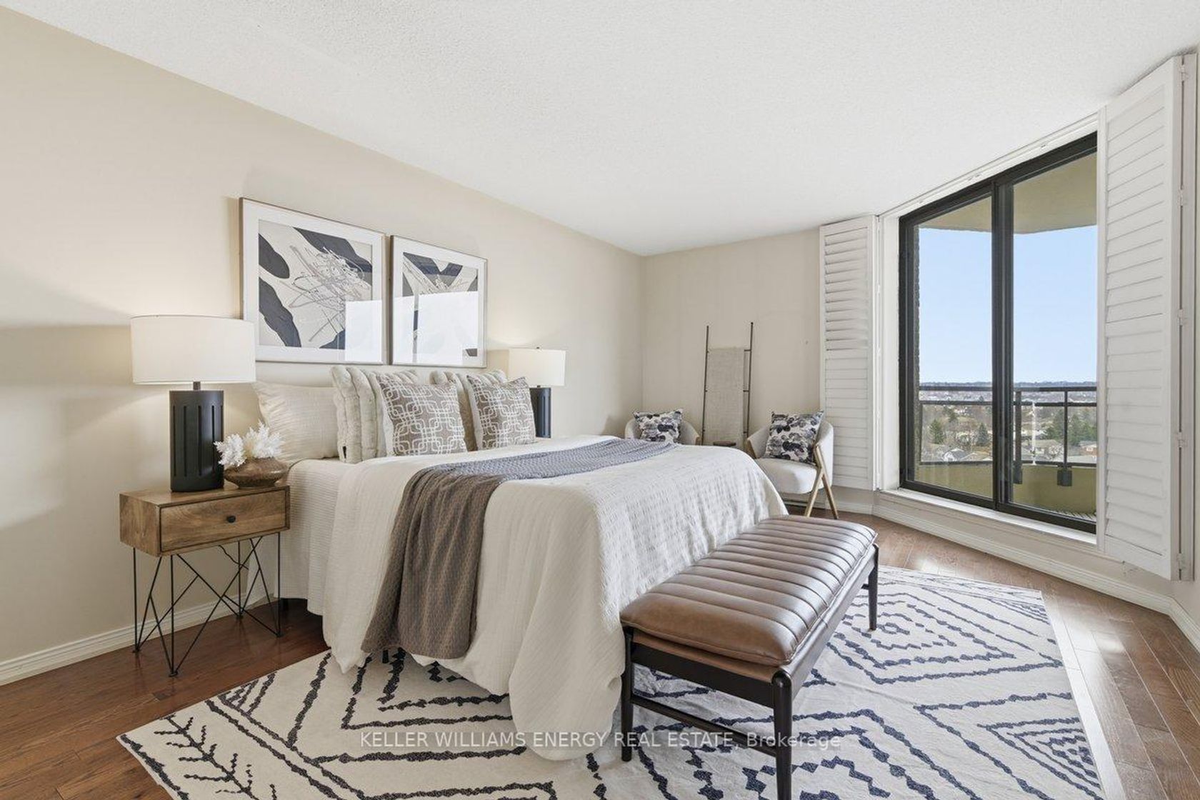 Enjoy the carefree lifestyle offered by one of Durham Region's most exclusive condominium communities. Welcome to the 1,730 sq. ft. Ruby Suite at Plaza 900. With five walk-outs to two spacious balconies facing South and East, you can watch the sunrise and take in views stretching to Lake Ontario.The expansive tiled foyer opens into a bright, airy living and dining area featuring hardwood flooring, large windows, and sliding doors. This generous space easily accommodates full-sized furnishings and is ideal for both everyday living and entertaining.Unwind in the study, or envision the possibilities for this flexible additional space. The large kitchen opens to a cheerful breakfast nook with a walk-out to one of the balconies.The spacious primary bedroom features hardwood flooring, three closets, a 5-piece ensuite, and direct access to the balcony. The second bedroom also offers a walk-out to the east-facing balcony and is conveniently located just steps from the main bath. In-suite laundry and ample storage add to the comfort and convenience.Residents enjoy an impressive array of amenities, including an indoor pool and hot tub, exercise room, billiards room, library, party room, bicycle storage, and hobby room. There is also a strong sense of community, with plenty of social activities for those who enjoy an active lifestyle. Steps to the Harmony Creek walking and cycling path. Each unit includes a large indoor locker and one parking space. An additional parking space may be rented through the condominium corporation.