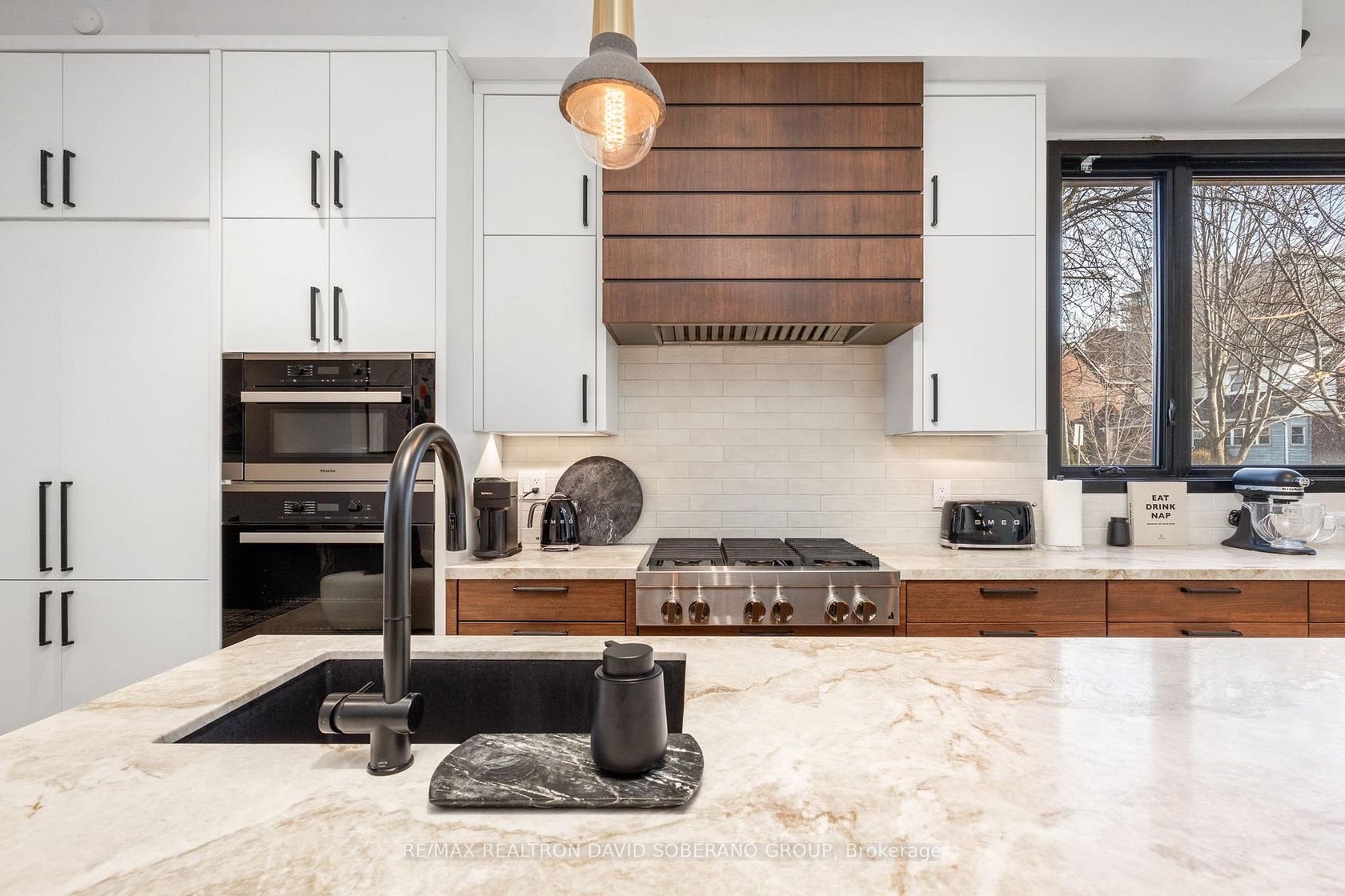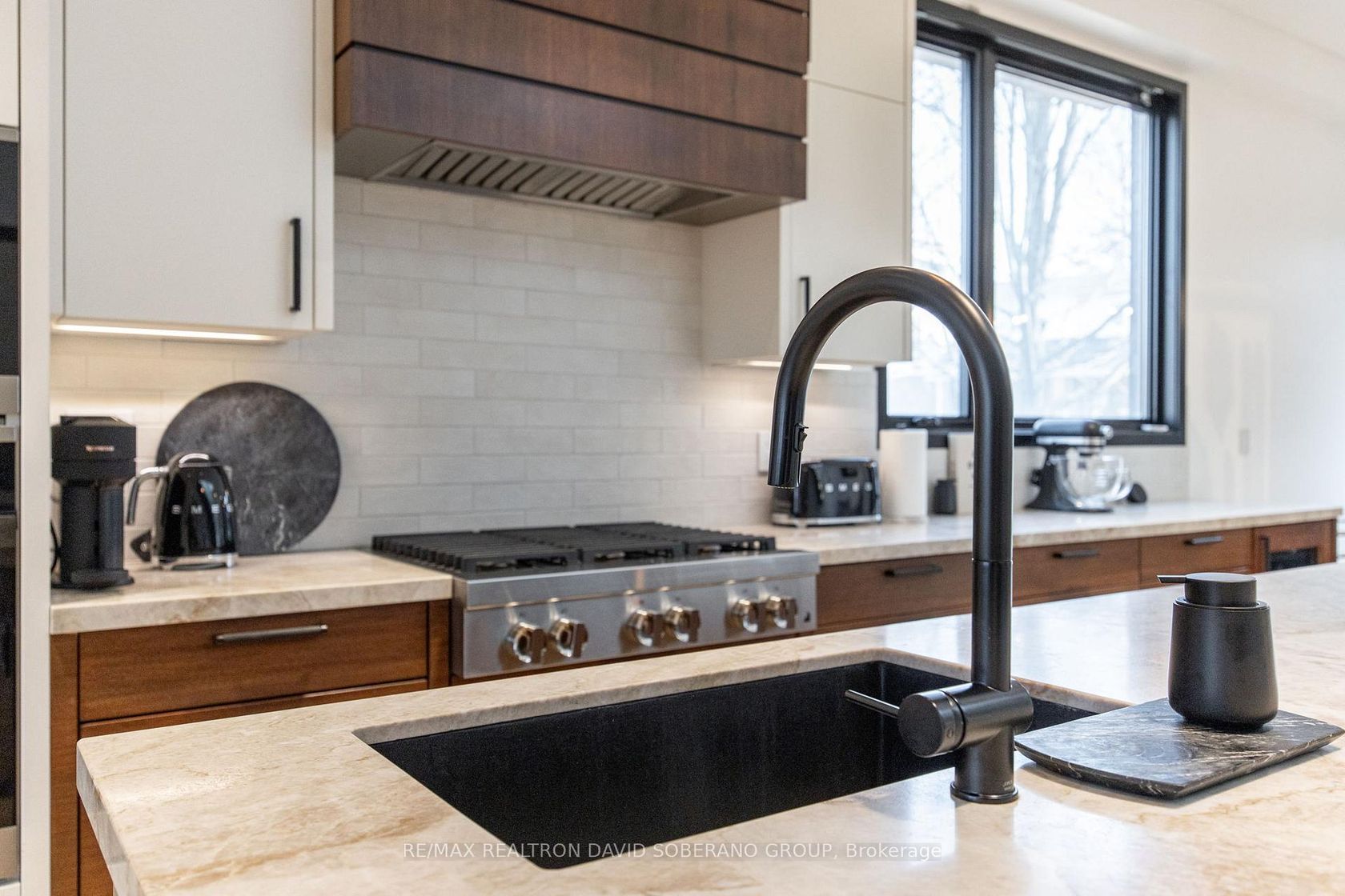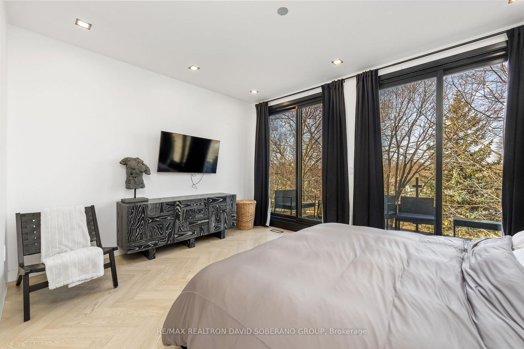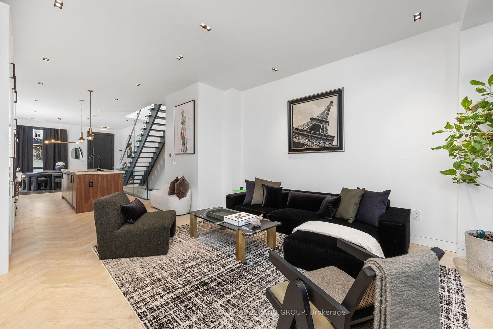 Step into a residence where modern luxury meets thoughtful design, offering an exceptional living experience inside and out. Defined by soaring 10-foot ceilings on the main level and 9-foot ceilings above, the home is filled with natural light and an undeniable sense of openness.At the heart of the home is a custom chef's kitchen, elegantly appointed with a striking Taj Mahal quartzite countertop and a premium appliance package, including a Miele oven and Dacor smart refrigerator-seamlessly blending refined style with cutting-edge functionality. A dramatic open riser staircase serves as an architectural focal point, while herringbone white oak engineered hardwood flows effortlessly throughout.Designed for year-round comfort, the home features a hydronic heated basement floor, an owned tankless water heater, and a heated driveway with an integrated snow-melt system-delivering both luxury and everyday practicality. Outdoor living is elevated with professionally landscaped grounds showcasing natural stone, retaining walls, and multiple tiered entertaining spaces, creating a private oasis ideal for hosting or relaxing. Two balconies extend the living space outdoors, including a main-level terrace with a gas BBQ hookup and a serene primary suite balcony-perfect for morning coffee or an evening retreat.Finished with timeless natural stone and stucco exterior detailing, and enhanced by Lutron smart lighting, designer LED illumination, and a full security camera system, this home is a rare offering that effortlessly combines sophistication, comfort, and lifestyle. 1600 sqft above grade as per plans.