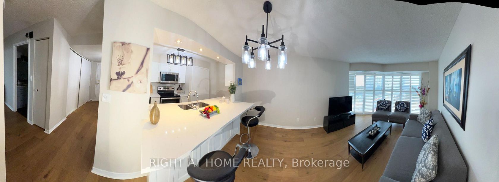 Great Condo living near the prestigious Guildwood Neighbourhood. Step into 1,100 sq. ft. of bright, renovated condo living in this spacious 2-bedroom, 2-bath suite with a well-designed open-concept layout. Floor-to-ceiling windows and south-facing, tree-lined views fill the living and dining area with natural light. The modern kitchen features ample cabinetry, functional counter space complemented by new in-suite laundry for turnkey convenience. Spacious 2 bedroom, 2 bath. Recently renovated with hardwood floors throughout. Stainless steel appliances and extra large quartz breakfast bar overlooking the living room. Huge ensuite storage and laundry! Living Room features Floor to Ceiling Windows with new coverings to bring in natural beautiful Light. New Furnace installed in October 24 2025. Perfect for first time buyers, investors or downsizers. Spacious Primary bedroom has large walk through closet and 3 pc/ensuite. Walking distance To Ttc, Go Train. Close to the Hospital, Parks, Scarboro Golf & Country Club, Scarborough Bluffs, Schools, Shopping and all amenities. Plenty of visitor parking. The generous primary bedroom easily fits a king-sized bed and includes double closets and a private ensuite. The second bedroom is ideal for guests, a home office, or family use, while a flexible work-from-home area and library or pantry add versatility. Includes one owned underground parking space, a locker, and abundant visitor parking. Enjoy luxury building amenities including concierge, indoor pool, gym, party room, and games room. Ideally located minutes from Guildwood GO Station, Lake Ontario, trails, transit, shopping, and everyday amenities-this is a must-see opportunity.