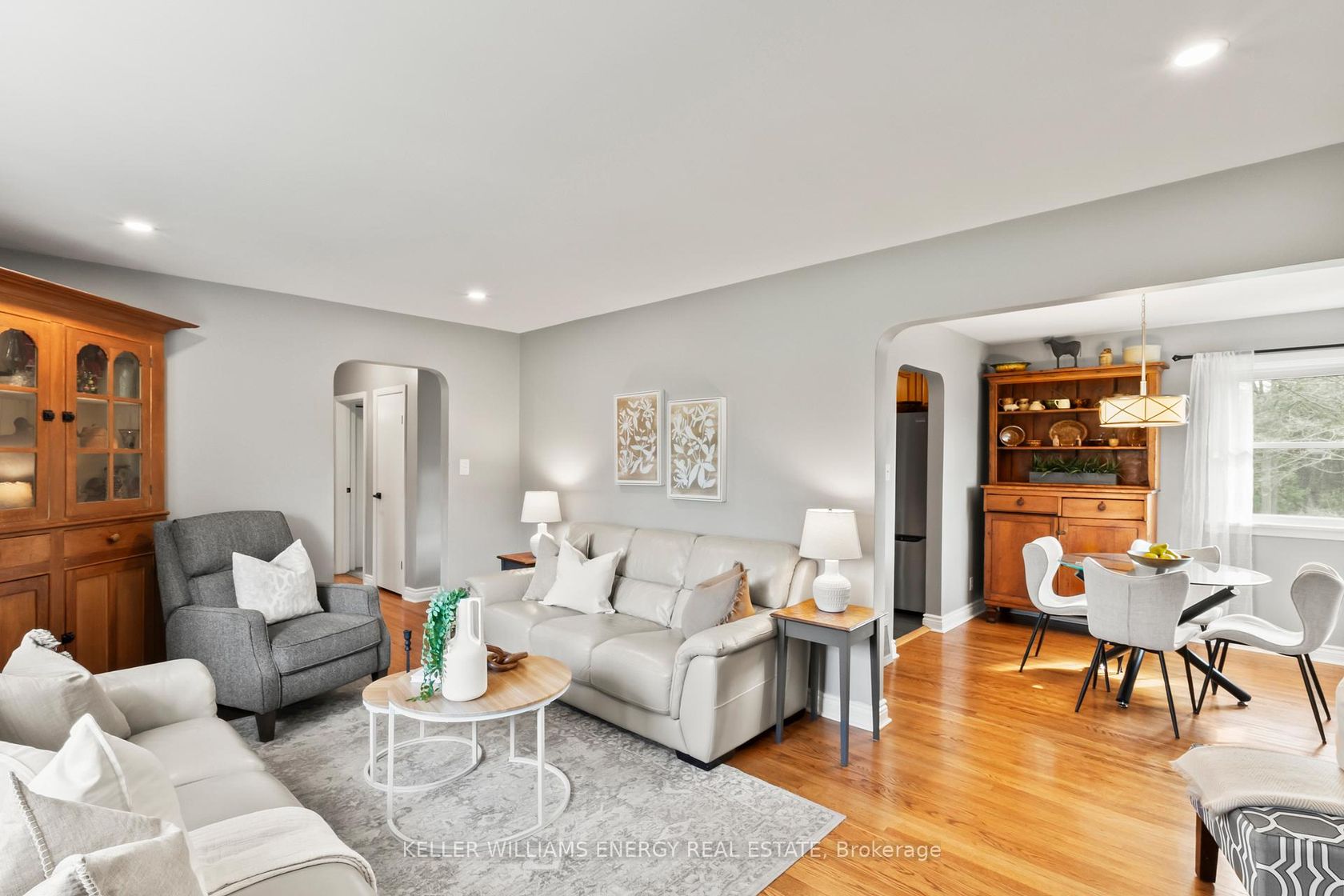Country living in town! 2385 Maple Grove Road offers the perfect balance of space, privacy, and everyday convenience. Set on an expansive 4.55-acre lot in Bowmanville, this detached bungalow presents a rare opportunity to enjoy a rural setting just minutes from all amenities. The home features a versatile 2+1 bedroom layout with 1+1 bathrooms and 1+1 kitchens, including a beautifully updated in-law suite with a separate entrance, ideal for multi-generational living or extended family. The lower level showcases a stylish kitchen, an inviting living area, a stunning bathroom with a walk-in shower, and a spacious bedroom complete with a walk-in closet. On the main level, hardwood flooring runs throughout the principal living spaces, including the bright living room, separate dining room, and hallway, with additional hardwood beneath the bedroom broadloom. The kitchen is both functional and timeless, featuring wood cabinetry, granite countertops, and stainless steel appliances. Step outside to a rear deck overlooking expansive green space, perfect for outdoor entertaining, gardening, or simply enjoying the peaceful surroundings. The property is framed by acres of mature forest, offering privacy and a true connection to nature. An attached garage, along with an additional detached garage, provides ample space for parking, storage, or workshop use. Zoned RH/Agricultural, this property offers exceptional potential, permitting up to two additional dwelling units (ADUs), as well as uses such as a home-based business and seasonal agricultural activities. Potential for future severance may exist, subject to all applicable municipal approvals and due diligence. Ideally located close to Highway 418, with convenient access to the 407 and 401 for commuters, and just minutes to Bowmanville's growing amenities. The future GO Train expansion into Bowmanville adds further long-term value and connectivity.