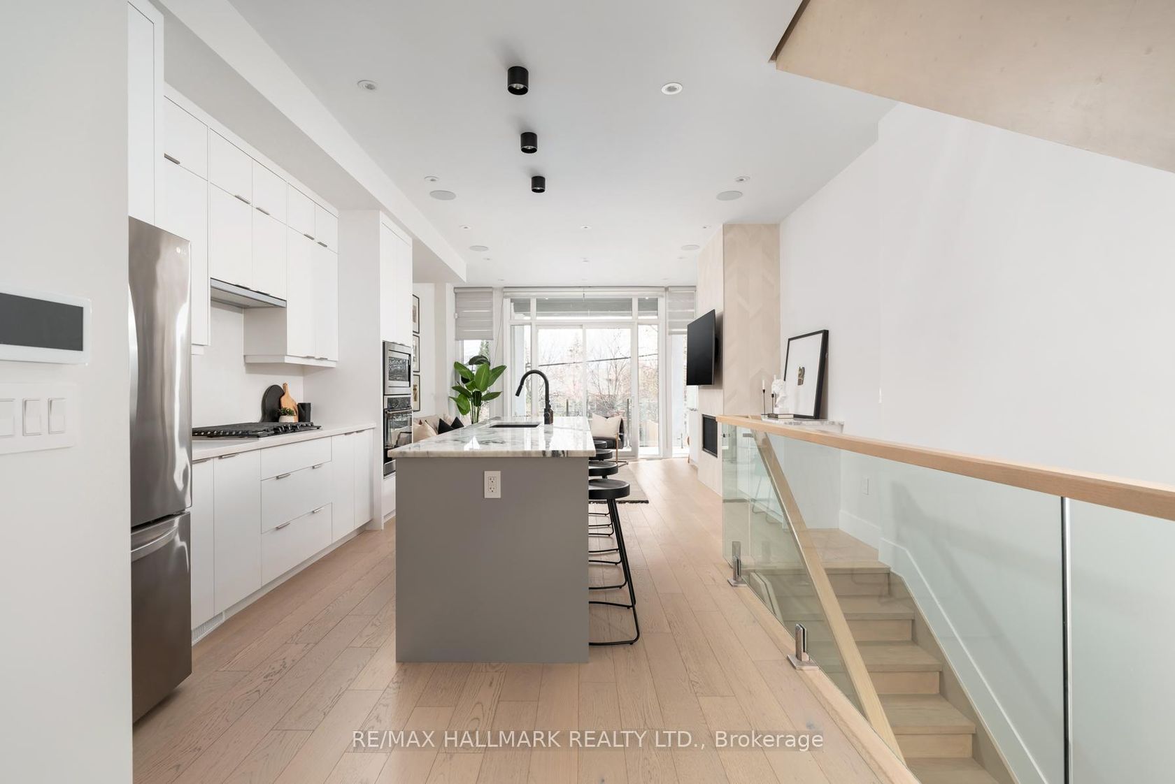 Welcome to this exquisite, thoughtfully designed 3-bed, 4.5-bath, 2-storey custom build home blending style, comfort & modern functionality. Nestled in the heart of East York on a deep 123-ft lot, this luxurious residence offers a B/I garage & tastefully finished living space, including a bright W/O basement. Designed with sophistication & exceptional craftsmanship throughout, the home showcases soaring ceilings, floor-to-ceiling windows, a floating staircase, glass railings, skylights & balconies that flood the space with natural light. The bright & functional main floor offers an open concept layout anchored by a sleek, chef-inspired kitchen complete with premium quartzite countertops, a center island, custom cabinetry & S/S appliances. A warm fireplace anchors the family rm, while the W/O to the deck extends the living space outdoors, ideal for everyday enjoyment. B/I speakers & powder room enhance both comfort & convenience on this level. Upstairs, natural light is a defining feature, enhanced by multiple skylights throughout. Three generously sized bedrooms, each with its own private ensuite, offering comfort & privacy. The primary suite features a luxurious 5PC ensuite, his-&-hers closets, & a W/O to a private balcony. It also includes a dedicated mini split AC & 1 air handler, ensuring optimal comfort in every season. The added convenience of upper-level laundry enhances everyday living. The basement offers a rec room featuring elegant flooring, a 3PC bath & W/O access to the backyard, ideal for extended family, guests, a home office, or gym. Step outside to enjoy the rear deck with a BBQ gas line, overlooking a spacious fenced backyard, perfect for hosting or relaxing. Steps from Aldwych Park, minutes to the DVP & Donlands Station make commuting effortless. This exceptional home offers a blend of craftsmanship, convenience & contemporary living, an outstanding opportunity in one of Toronto's most desirable communities.
