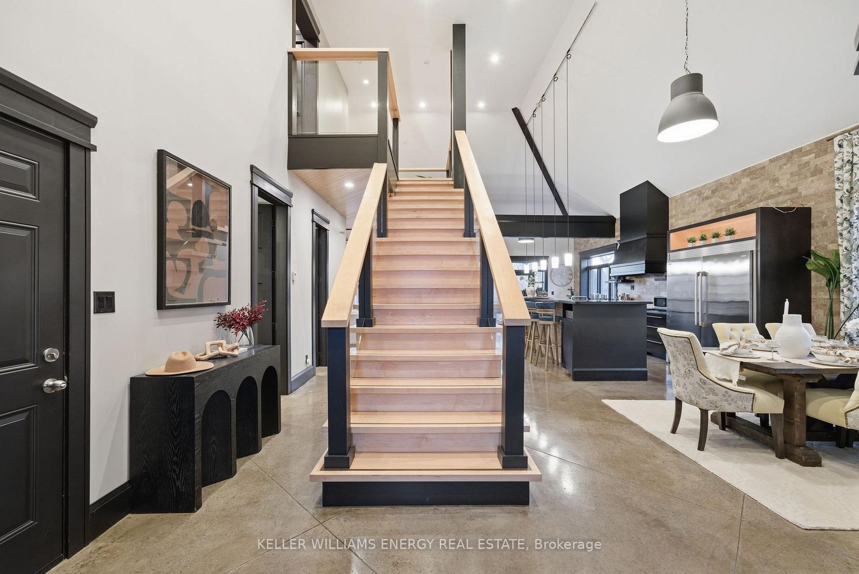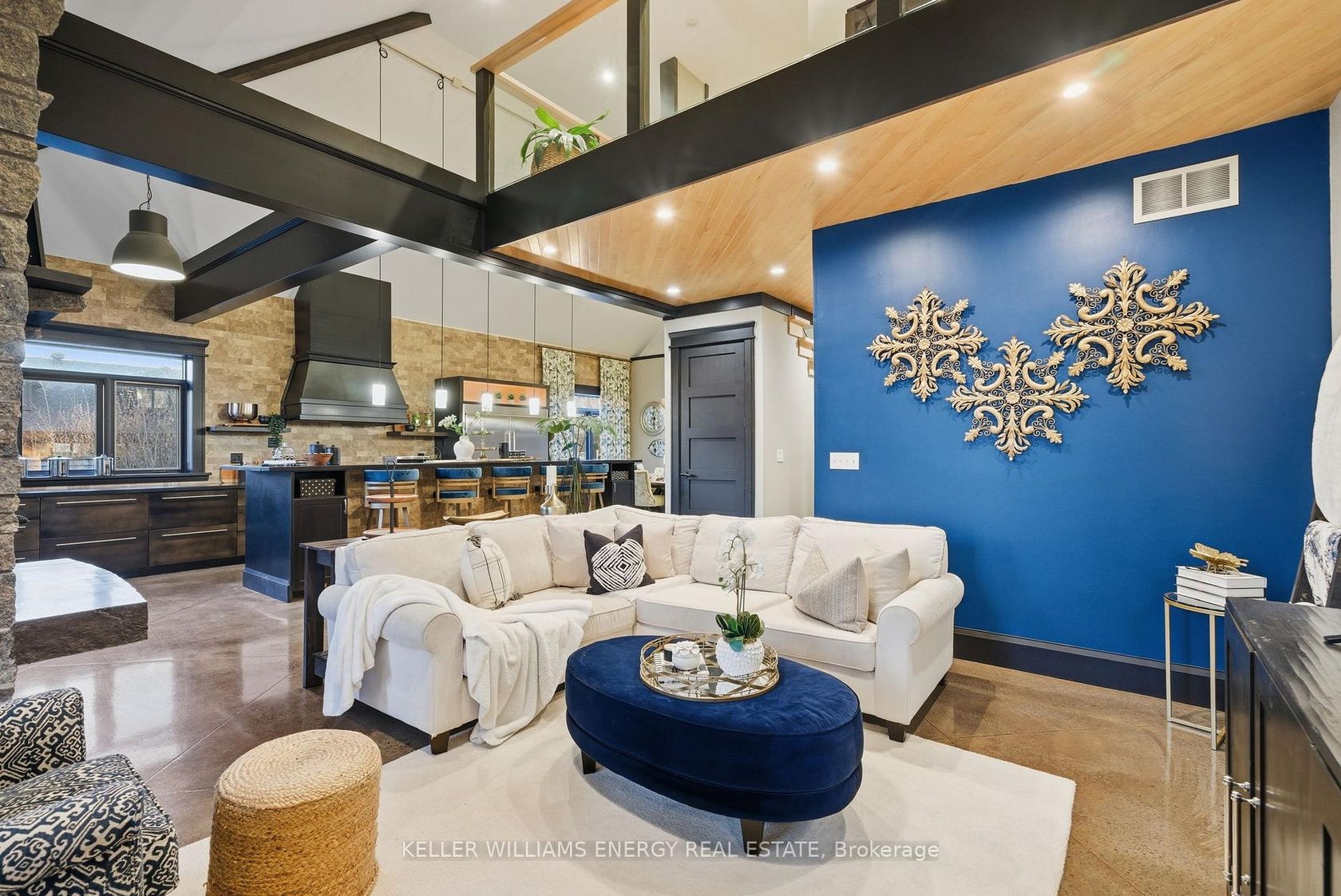 Experience the pinnacle of modern luxury and thoughtful design in this custom-built bungaloft estate in Clarington. Set on a premium ravine lot, this exceptional home offers privacy, scale, and sophistication-all tailored for elevated living and multi-generational flexibility. Constructed with an ICF (Insulated Concrete Form) foundation, this residence delivers superior energy efficiency, durability, and year-round comfort. Boasting 4+3 bedrooms and 7 beautifully appointed bathrooms, the home seamlessly blends elegance with function. At the heart of the home, the chef's kitchen is a true showpiece, featuring natural stone countertops, a professional-grade range, custom hood fan, and premium refrigeration. Designed for both entertaining and daily living, the space flows effortlessly into grand principal rooms. Highlights include custom 8-foot doors, exposed wooden beams, and a striking zero-clearance fireplace. Architectural details set this home apart, including a dramatic glass catwalk and sleek glass balconies that enhance the open-concept design. A combination of concrete and wood flooring throughout adds texture and durability, while hydronic heating alongside forced air gas ensures year-round comfort. A dedicated main floor laundry room adds everyday convenience. The fully finished basement offers incredible versatility with two separate apartments/in-law suites-ideal for extended family or income potential. Outdoors, the property continues to impress with parking for up to 15 vehicles and a massive 30 x 58 ft detached shop, perfect for hobbyists, entrepreneurs, or additional storage. Unwind in the hot tub while enjoying tranquil ravine views. This is a rare offering where luxury meets functionality-crafted for those who expect uncompromising quality, space, and design.