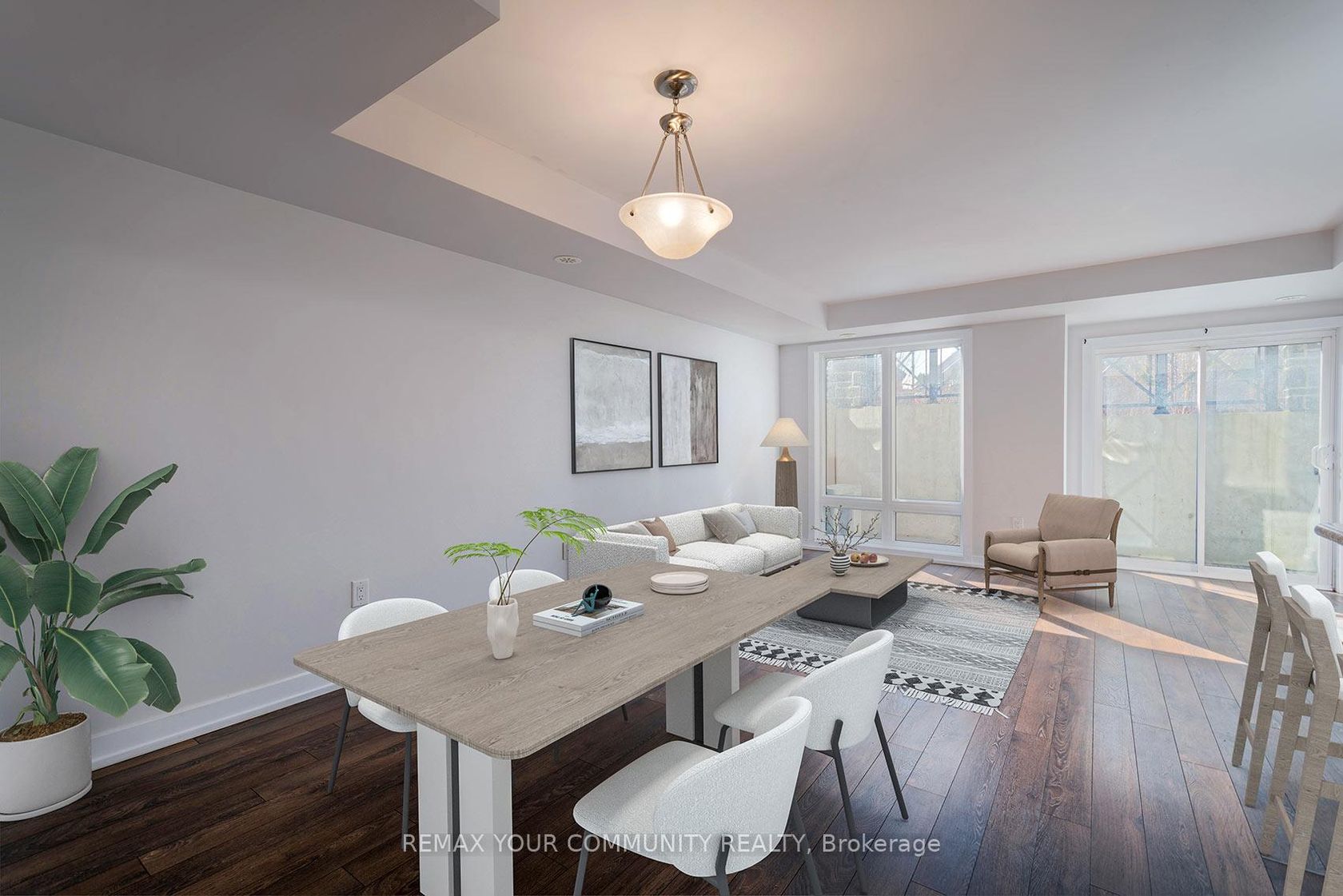 2 Bed, 2 Full Baths, 1 Locker and Rare 2 Parking Spaces Side-By-Side!! Turnkey 1 Floor Condo Townhouse in the Heart of Markham's Cornell Community. No Elevators, No Winding Stairs. Interior Building Nestled Away from Traffic Noise, but Easy Parking Garage Access. Brand New Flushmount Light Fixtures Throughout. Bright and Functional with a Spacious Open Concept Eat-In Kitchen, Living, and Dining. Easy to Entertain! Seamless Sightlines and a Walk-Out to Patio. Strategically located within walking distance to Cornell Community Centre, Markham Stouffville Hospital, Boxgrove Centre, and Top-Rated Schools, with Quick Access to 407 and Regional Transit. Perfect for First-Time Buyers and Young Families Looking for a Move-In Ready Home in a Walkable, Park-Heavy Neighborhood.
