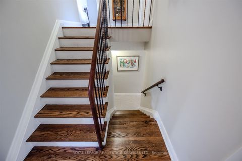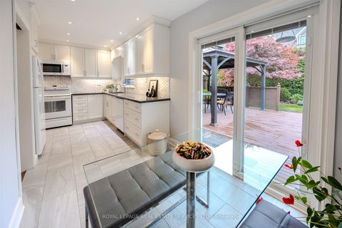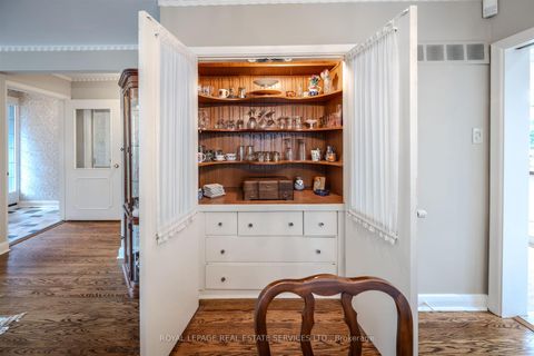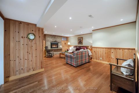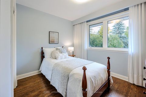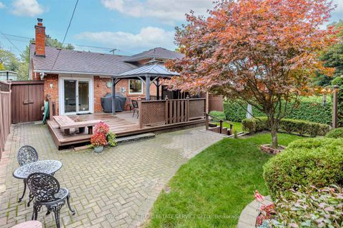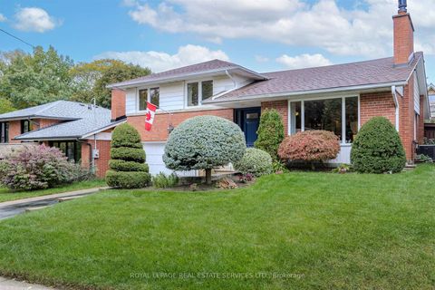 Nestled on a mature, tree-lined crescent in the heart of exquisite Sunnylea, this quintessential mid-century sidesplit sits on an exceptional 50 x 100 ft lot, just steps from the majestic walking paths along Mimico Creek and Reid Park.Bright and spacious, the home offers ~1600 sq/ft. of living space above grade plus ~700 s/f lower level. The main floor features hardwood floors, a welcoming foyer, large picture windows, a stone fireplace and built-in china cabinet adding timeless charm. The renovated eat-in kitchen overlooks and walks out to the expansive, fully fenced backyard-complete with a deck and pergola, perfectly positioned for sunshine-filled days and peaceful evenings in a picturesque garden setting. Upstairs are three generous bedrooms with deep double closets and a spacious family bath with linen storage. The ground-level offers a den/4th bedroom overlooking backyard, 3-piece bath, coat closet and direct access to backyard. The lower-level family/recreation room provides comfortable living space with high ceiling, hardwood floors, built-in shelving & wet bar, a gas fireplace and excellent versatility for family life or entertaining, along with a large laundry room, storage room, office, cantina and cedar closet. The garage accommodates 1+ cars plus a coveted workshop. Located in the highly sought-after Sunnylea School District and just a short walk or ride to The Kingsway's shops, restaurants and amenities, Royal York TTC Station, bike paths, The Lakeshore and minutes to downtown Toronto and Mississauga, the Gardiner Expressway, Hwy 427, UP Express, Pearson and Billy Bishop Airports. A rare opportunity to own a move-in ready classic Sunnylea home in an exceptional setting.