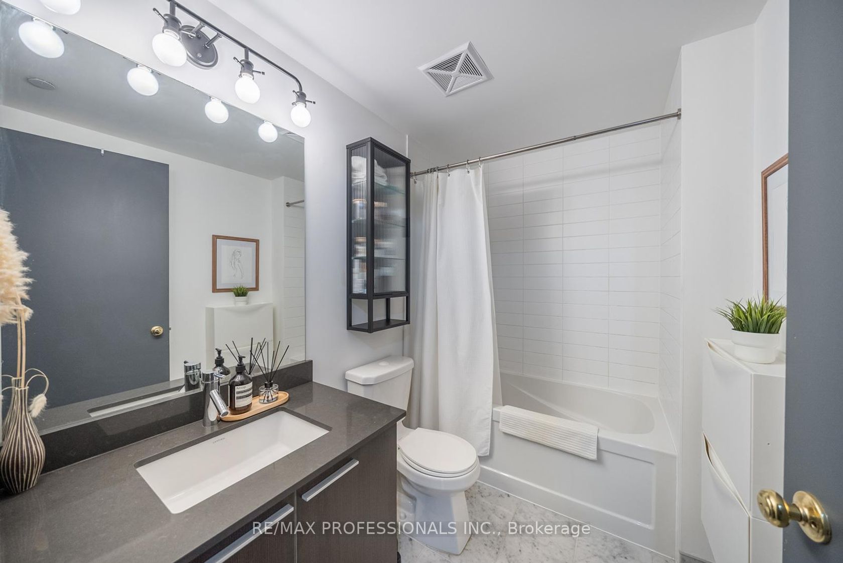 Welcome home to refined waterfront living in the highly sought-after community of Humber Bay Shores. Just moments from the lake, this beautifully appointed one-bedroom condo offers a perfect balance of modern design, comfort, and lifestyle. Sun-filled and thoughtfully upgraded, the open-concept layout is ideal for both everyday living and entertaining. The contemporary kitchen features stainless steel appliances, a glass tile backsplash, and a striking quartz waterfall island that anchors the space with style and function. Upgraded lighting and a custom glass enclosure discreetly concealing the washer and dryer add a sophisticated, design-forward touch. The living area flows seamlessly to a spacious private balcony, creating an inviting extension of the home with impressive views and an ideal setting for morning coffee or evening relaxation. The bedroom is generously sized with ample closet space, while the modern bathroom is finished with clean lines and sleek fixtures, offering a spa-inspired feel.Residents enjoy access to an exceptional collection of resort-style amenities, including a fully equipped fitness centre, squash court, sauna, outdoor swimming pool with cabanas, rooftop terrace, party room, business centre, guest suites, and 24-hour concierge service. Steps to waterfront trails, parks, shops, dining, and transit, with plenty of visitor parking available, this home offers effortless lakeside living in one of Toronto's most vibrant communities.