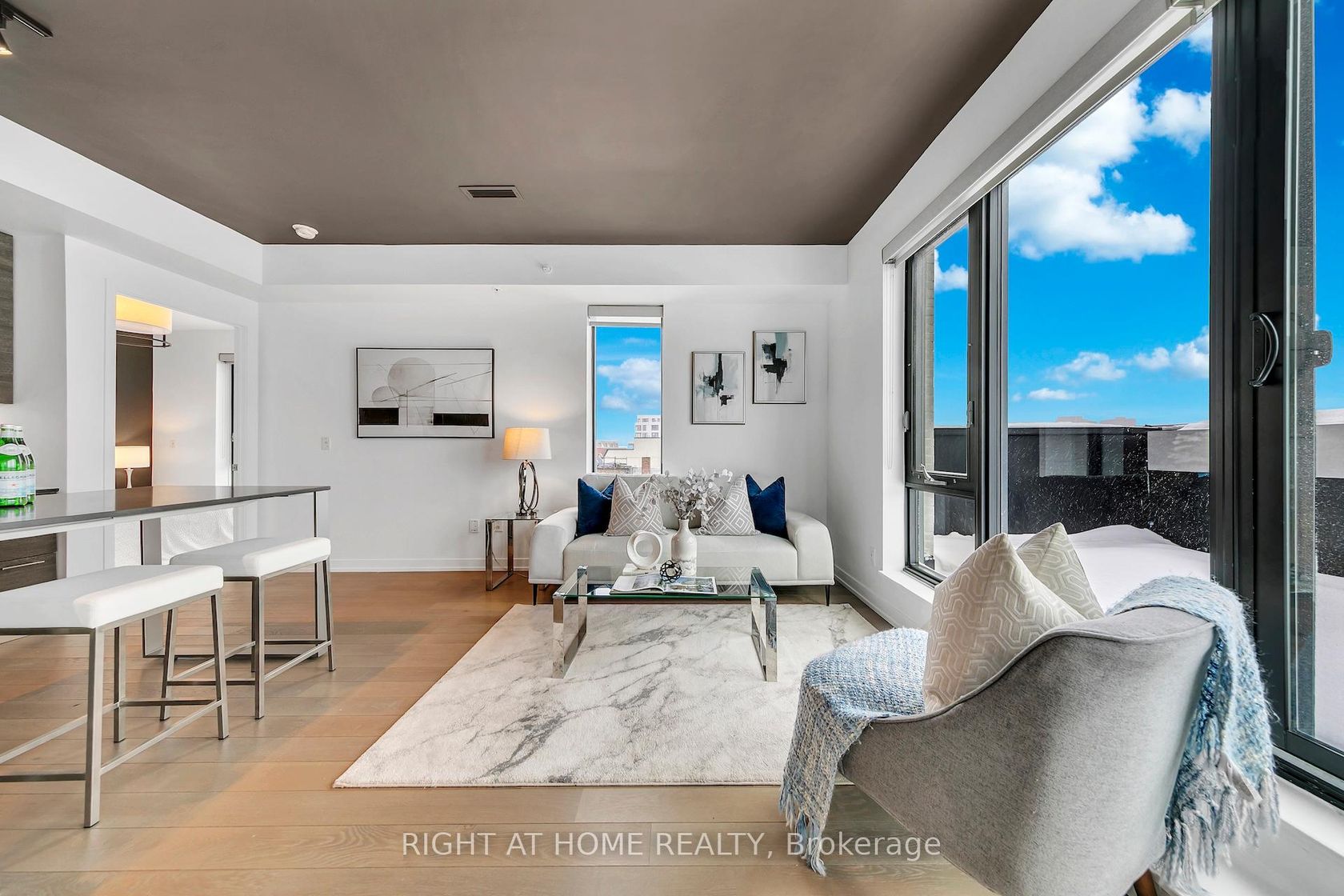 Luxury Meets Skyline Views. Welcome to this stunning corner residence featuring 1,227 sq. ft. of sun-drenched living space. The heart of the home is an expansive kitchen and Great Room, designed for seamless indoor-outdoor living with a walk-out to a spectacular patio. Enjoy total privacy and southern exposures overlooking the lake and city skyline. This rare offering includes two bedrooms plus den, two full baths, two-car parking and a large terrace for entertaining. Perfectly situated for the urban-sophisticated, enjoy a short walk to the Bloor Subway, UP Express, the West Toronto Railpath, High Park, and immediate access to the city's best restaurants, florists, and shopping.
