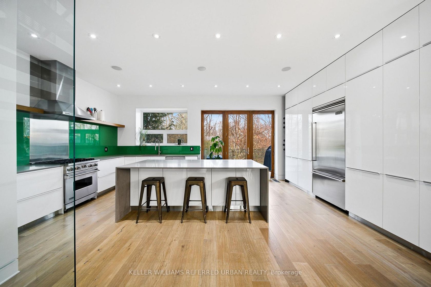 Absolutely stunning custom modern masterpiece backing onto Jeff Healey Park, located in the highly sought-after Norseman Junior Middle School district. Showcasing exceptional design and craftsmanship throughout, with no expense spared. This preferred 4-bedroom, 4-bathroom layout features a finished basement with polished concrete floors. Striking glass banisters and custom Corten steel accents are showcased throughout the home, including the stairs, light fixtures, landscaping, and interior design. Built for exceptional entertaining, the home offers a spacious open-concept layout anchored by a chef-inspired kitchen.