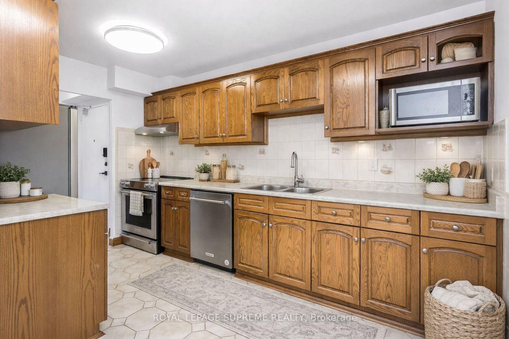 They don't build them like this anymore! Bright and spacious 3-bedroom suite in the well-managed Queenscourt Condos, offering true all-inclusive living with all utilities included for stress-free budgeting. Sun-filled layout features large windows, an oversized balcony, ensuite laundry, brand-new appliances, new HVAC system, upgraded electrical panel with breakers, and all new blinds, with the building recently improved with new windows. Ideally located within walking distance to shopping, grocery stores, schools, parks, TTC, and major bus routes, with quick access to Hwy 427, Gardiner Expressway, QEW, Pearson Airport, Sherway Gardens, and downtown Toronto, perfect for families and commuters seeking space, value, and convenience.
