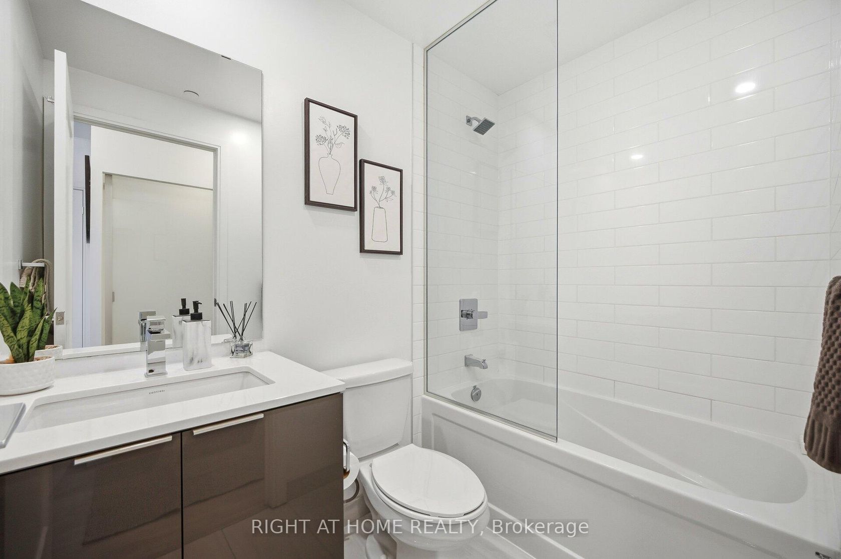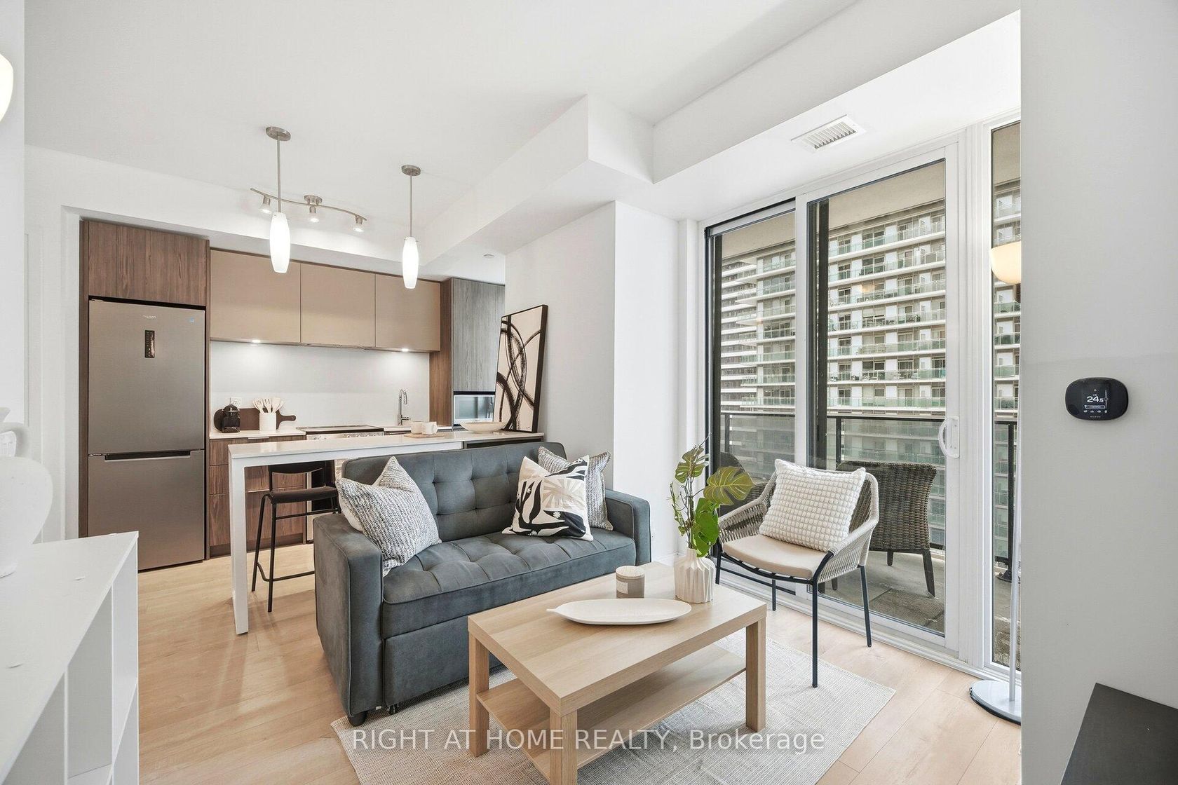 Enjoy lakeside condo life in the prestigious Vita on the Lake in Mimico at Humber Bay Shores. This stylish modern 1+1 bedroom, 2-bathroom,9 foot ceilings condominium by Mattamy Homes offers an open-concept layout with lake and sunset views. Contemporary finishes include laminate flooring throughout and a sleek kitchen featuring granite countertops & backsplash, stainless steel appliances, and a breakfast island with upgraded ceiling lighting. Sliding glass doors in both the living room and bedroom open to a spacious 30' x 5' private balcony, with views of the waterfront setting. The primary bedroom is complete with a private ensuite bathroom featuring a glass-enclosed shower, while a separate 4-piece bathroom with tub provides added functionality.Den can be used as bedroom or office with sliding glass doors for privacy. Residents enjoy resort like amenities including a fitness centre, outdoor pool, and a refined party room with bar and billiards lounge with fireplace and large-screen TV. An expansive terrace with outdoor barbeque area, lounge seating, and gas firepit creates an ideal setting for entertaining and relaxing with views of the lake.Located within walking distance to local lakeside restaurants and cafés La Vecchia, Firkin on the Bay pub, Eden Trattoria, San Vito cafe, scenic walking and biking trails, nearby parks, and the beach-offering the best of waterfront living and outdoor lifestyle. Transit at your doorstep.Walk to nearby shops Metro, Shoppers drugmart, LCBO for all your needs. Mimico Go train nearby to get to Union Station in 15 min. QEW access in 3 min. Pet friendly condo, enjoy walks with your dog by the waterfront. Dog wash station on main floor. Car wash bay on parking level 5. Prime parking spot next to elevator.