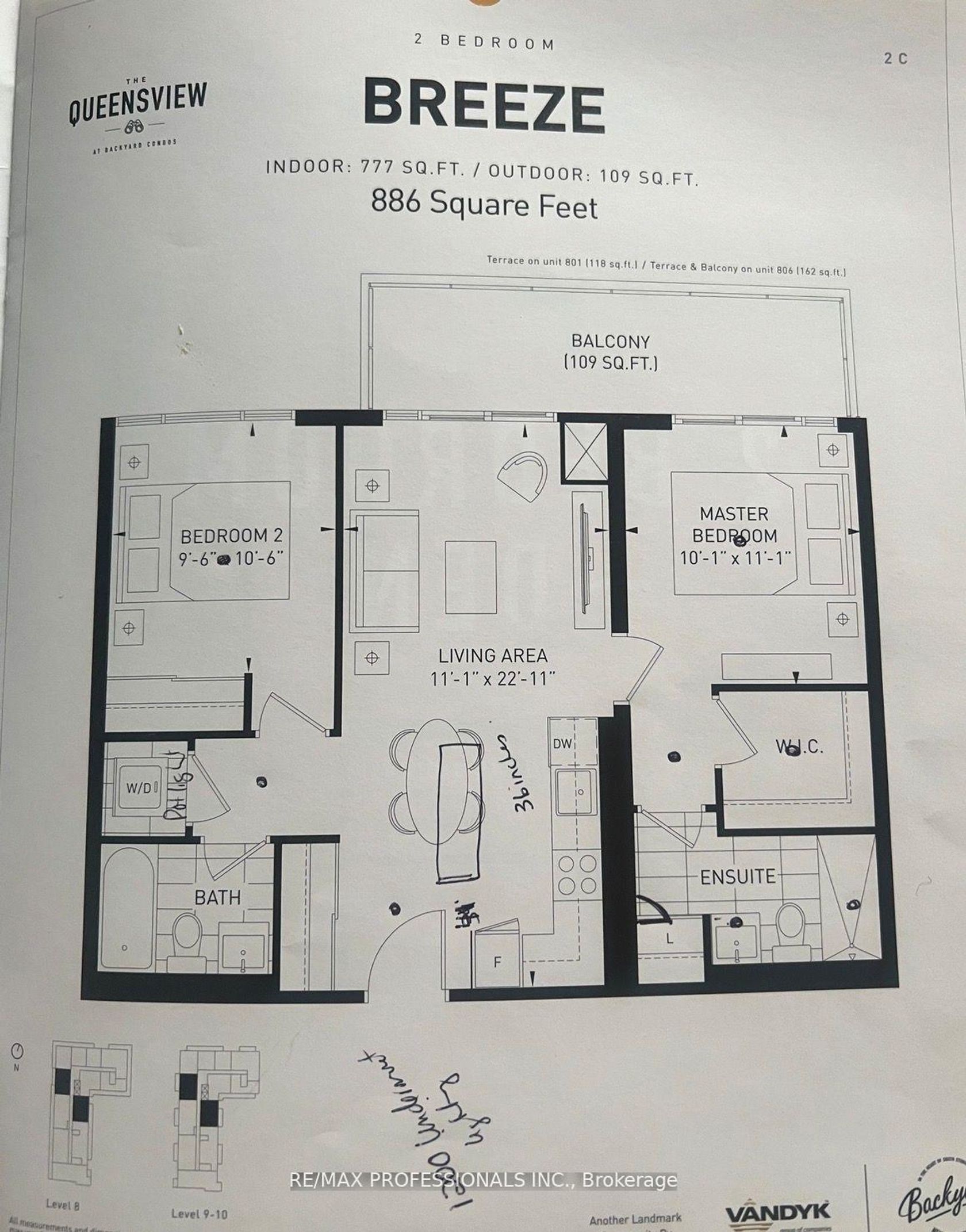 Great opportunity available for a sub-penthouse unit at the new Queensview at Backyard Condos! This 2 bed, 2 bath unit features a functional and ideal layout (see floorplan) with a ton of upgrades. Open concept living/dining with island, laminate throughout, and walk out to a large balcony with incredible views of city skyline and lake! The primary bedroom features a walk-in closet and 3-piece ensuite with large shower and with additional walk-out to the large balcony. The second bedroom (conveniently located on opposite side) is perfect for a child, roommate, home office or hosting. Parking and locker included. Building features Concierge, fitness centre, party room with outdoor lounge including bbq area, conference room, kid's room, pet spa, guest suite and more! Conveniently nestled along the Humber River walking and biking trails. Close to Lake, Transit right outside! Large park, quick access to QEW/Gardiner and convenient retail shops onsite including pharmacy, physiotherapy, F45 and more!