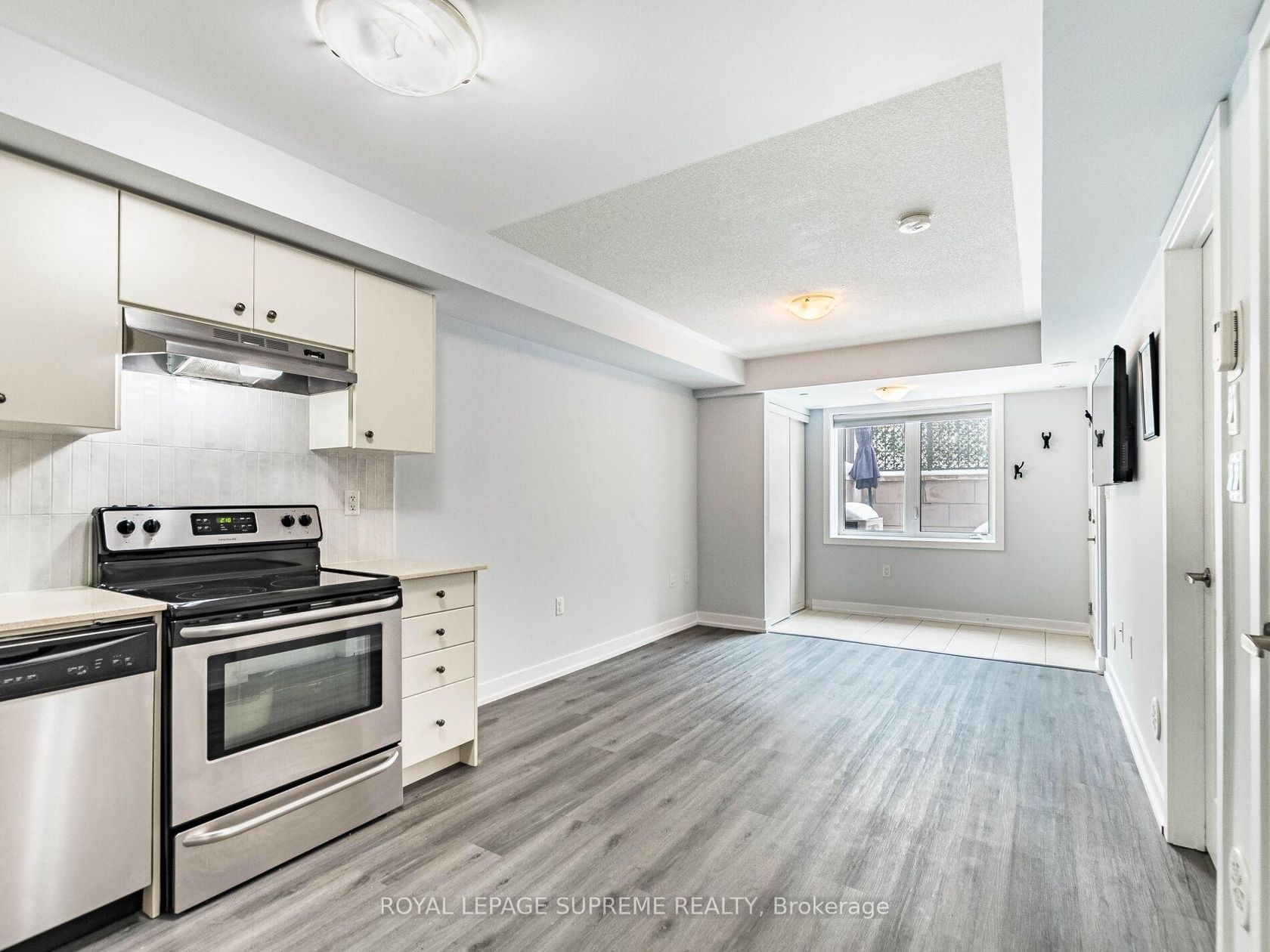Live boldly in the heart of Mimico at the vibrant and stylish ROYAL TOWNS - and do it in a coveted CORNER UNIT! This rare ground floor Windsor Model gives you the best of urban convenience and lakeside living, wrapped in extra windows, extra light, and extra privacy that only a corner suite can offer.Step outside and you're moments from the Mimico waterfront, scenic trails, parks, cafés, restaurants, shops,No Frills and beloved local gems like San Remo Bakery and Humber Bay Park. Commuting is effortless with the GO Station a short walk away and quick access to the TTC, Gardiner, and 427. Inside, the space feels fresh, bright, and stylish with brand new laminate flooring, fresh paint, a new designer backsplash, quartz counters, stainless steel appliances, upgraded closet shelving, and a refreshed bathroom. The open concept layout flows naturally to your private 90 sq ft terrace - perfect for BBQ nights, morning coffee, or hosting friends in your own outdoor hangout. Set within an intimate 104 unit community built by Icon, this corner unit offers a unique blend of energy, comfort, and modern living. everything about this home is designed for ease and enjoyment.