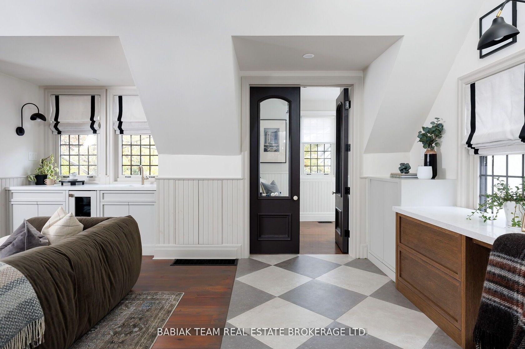 Majestic 6 +1 bedroom residence, set on a spectacular 75' x 190' Muskoka-like ravine lot in the heart of prestigious Baby Point! This property of distinction offers the discerning buyer an impressive combination of features including grand principal rooms, a luxurious saltwater pool, an oversized garage with indoor parking for 3 cars, and an expansive show-stopping great room with meticulous architectural details. Featured in Style At Home, this extraordinary property has been carefully renovated and designed with great care and attention to detail. Centre hall foyer open to elegant living and dining rooms with sublime windows on multiple sides and treed views. Chef's kitchen with adjoining breakfast room and floor-to-ceiling sliding glass doors to resort-like outdoor living with covered stone patio with barbecue area, marvelous fiberglass pool with automatic cover and adjacent composite deck, lower patio with gas fire table, and private ravine views on all levels. Main floor office and powder room. Built above the garage but connected through the main house, the sensational great room designed by Brian McCourt Designs boasts a vaulted ceiling, gas fireplace with soapstone mantel, impeccable custom millwork throughout with built-in office and wet bar, balcony overlooking ravine, delightful 3-piece bath, and separate gym. The second level includes a wonderful primary bedroom retreat with captivating ravine vistas, balcony, custom dressing room, and a hotel-inspired 5-piece spa bathroom. Three additional lofty bedrooms are located on this level, together with a 4-piece family bath. The third level includes two more bedrooms, two walk-in closets, and another full bathroom. Rounding out this exceptional offering the lower level includes a large recreation room, laundry and mudroom with custom cubbies, separate entry, seventh bedroom, lovely 3-piece bath, and storage room. Extensively landscaped with irrigation, fabulous plantings, and an abundance of parking.