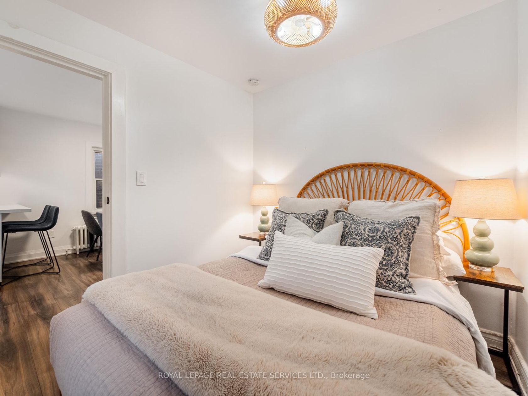 Fantastic opportunity to own a charming detached bungalow on a quiet dead-end street with a legal front parking pad. Bursting with curb appeal, this well-maintained home offers a bright and spacious open-concept layout, perfect for modern living and entertaining. A welcoming and functional mudroom entry features heated floors and a double closet, providing excellent storage and everyday convenience. The stylishly updated kitchen showcases open shelving, new quartz countertops, and a convenient breakfast bar, creating a warm and functional heart of the home. Large double French doors open to a private backyard oasis complete with brand-new decking, thoughtfully designed landscaping, and a generous 10' x 12' outdoor shed-ideal for storage or easily reimagined as a home office, gym, or creative studio. An excellent condo alternative and perfect for first-time buyers, this home offers the freedom of homeownership without maintenance fees. Located in the sought-after Rockcliffe-Smythe neighbourhood, this area is known for its strong sense of community, tree-lined streets, and easy access to parks, trails, and local amenities. Enjoy close proximity to the Junction and Stockyards districts, along with the added convenience of being close to the Eglinton Crosstown LRT, plus quick access to Bloor West Village, Jane Subway Station, Eglinton Flats, and Humber River hiking and biking trails.