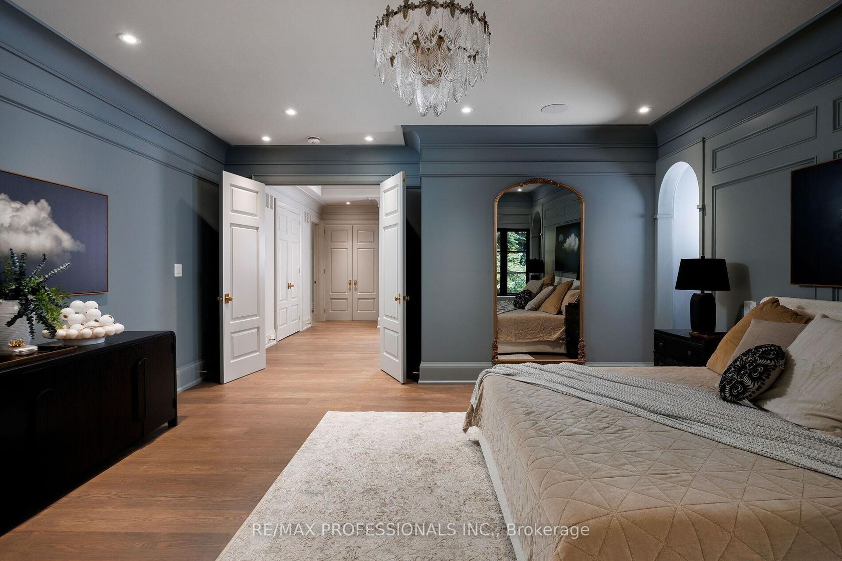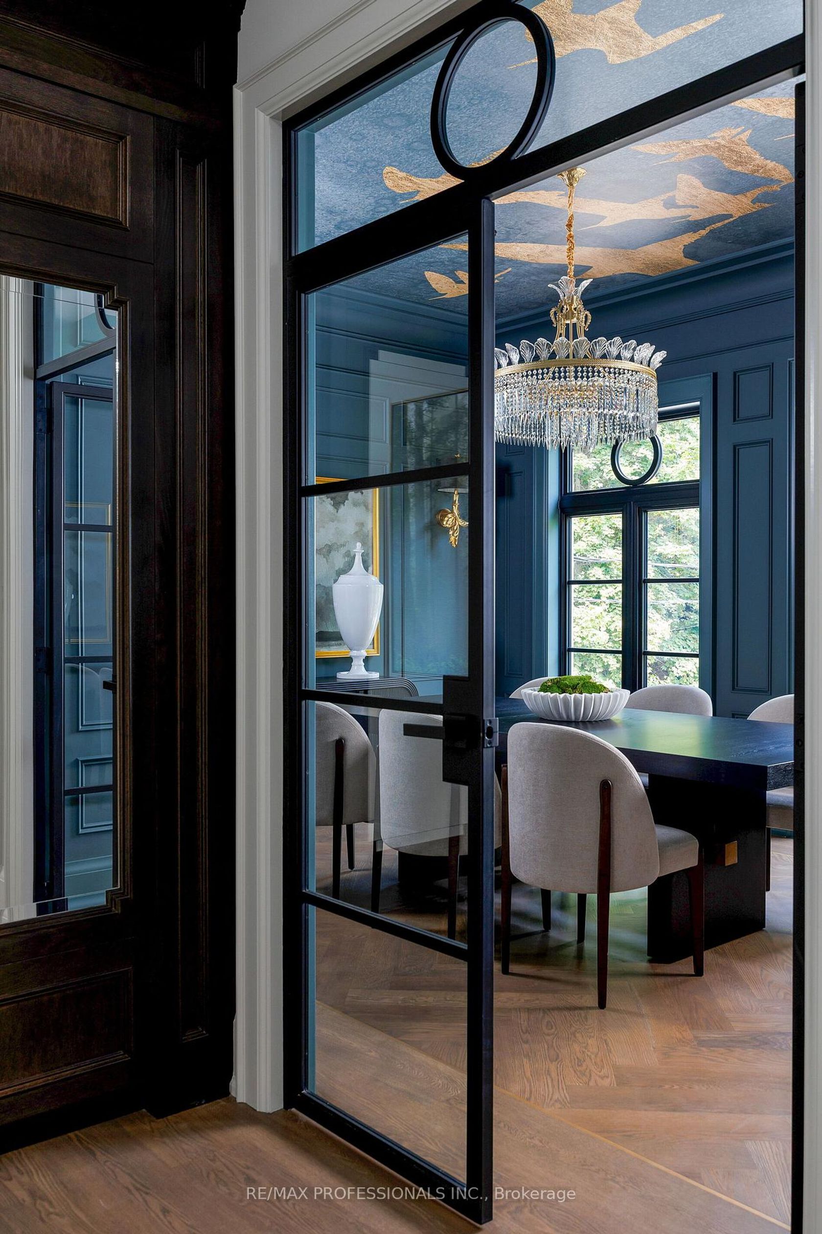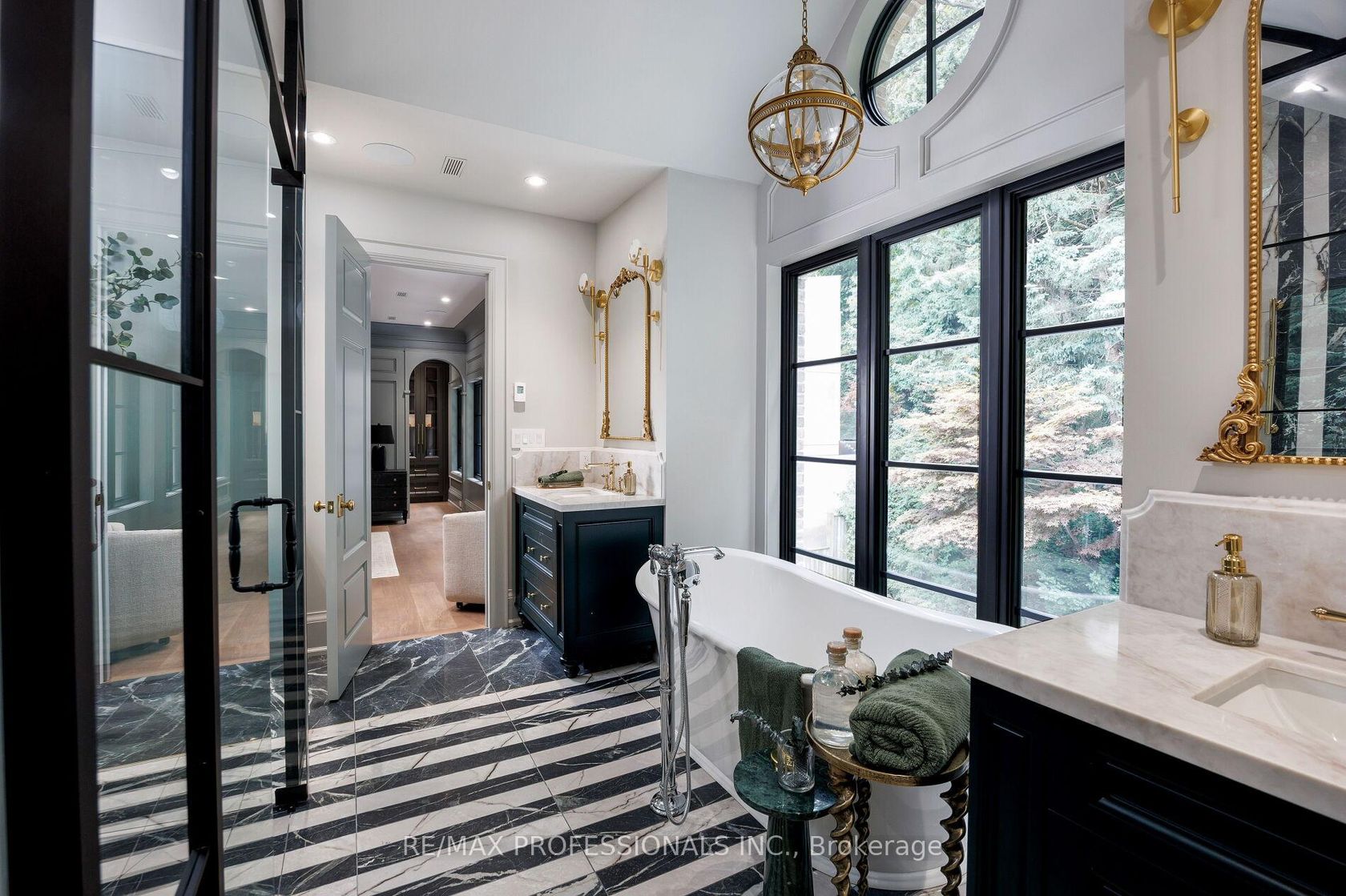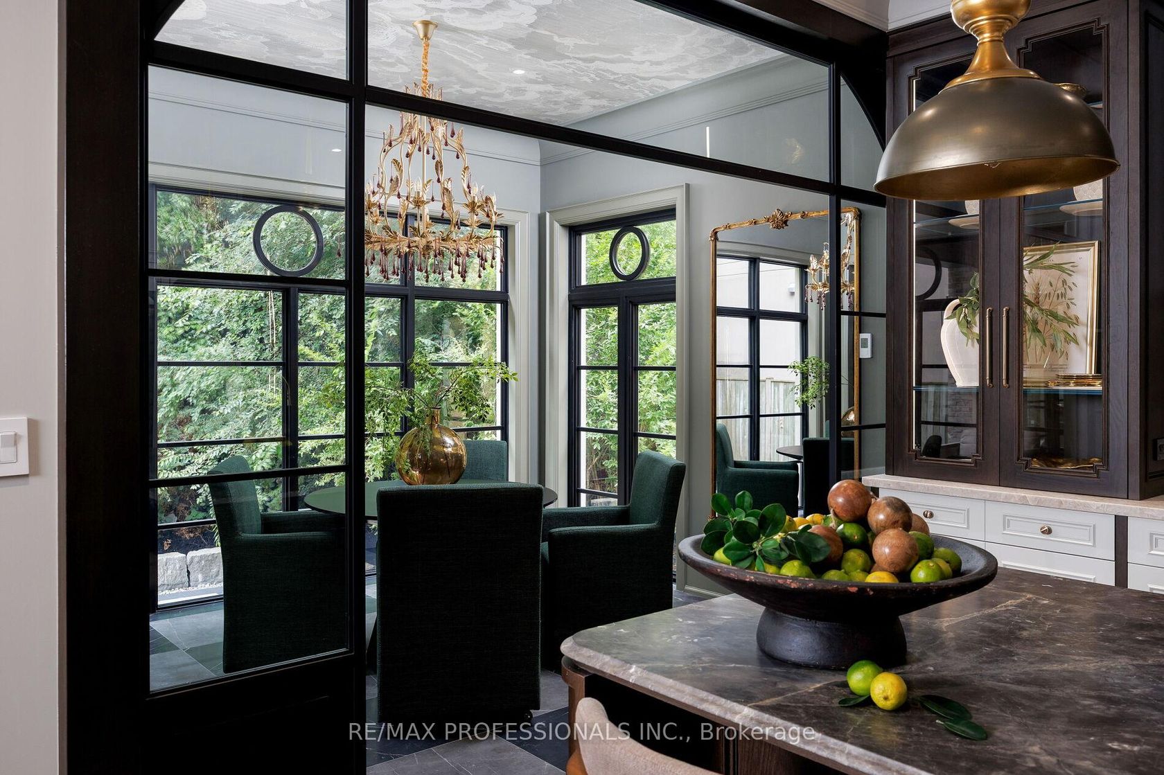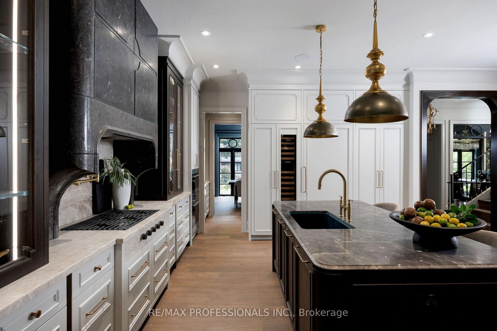 Nestled on a quiet cul-de-sac in a rare, beautiful ravine setting, this 5,000+ sq ft French-inspired estate architecturally refined by Hausworks, built by Atelier Custom Homes and designed and styled by Rizo Lola Designs offers three levels of refined luxury built with the finest curated materials. The main floor features a formal dining room, elegant office, and a stunning open-concept kitchen and family room with high-end appliances, honed quartzite & marble countertops, custom fine cabinetry, a large center island and a breakfast nook with ravine views. The family room, anchored by a limestone fireplace, flows into a sunroom overlooking the ravine. Upstairs boasts four spacious bedrooms, including a serene primary retreat with a grand walk-in closet and spa-like ensuite with oversized glass shower and heated floors. The lower level offers a wine room, wet bar, rec room with fireplace and custom built-ins, radiant heating, a fifth bedroom/office, full bath with steam shower, and gym. The exterior blends aged brick with limestone, professionally landscaped grounds, cobblestone driveway with snowmelt system, Generac generator, custom stone patio/walkway, and in-ground irrigation. Situated on an impressive ravine lot in one of the city's most prestigious enclaves, close to top schools, parks, and major routes, this residence delivers unmatched privacy, elegance, and lifestyle for the most discerning buyer.