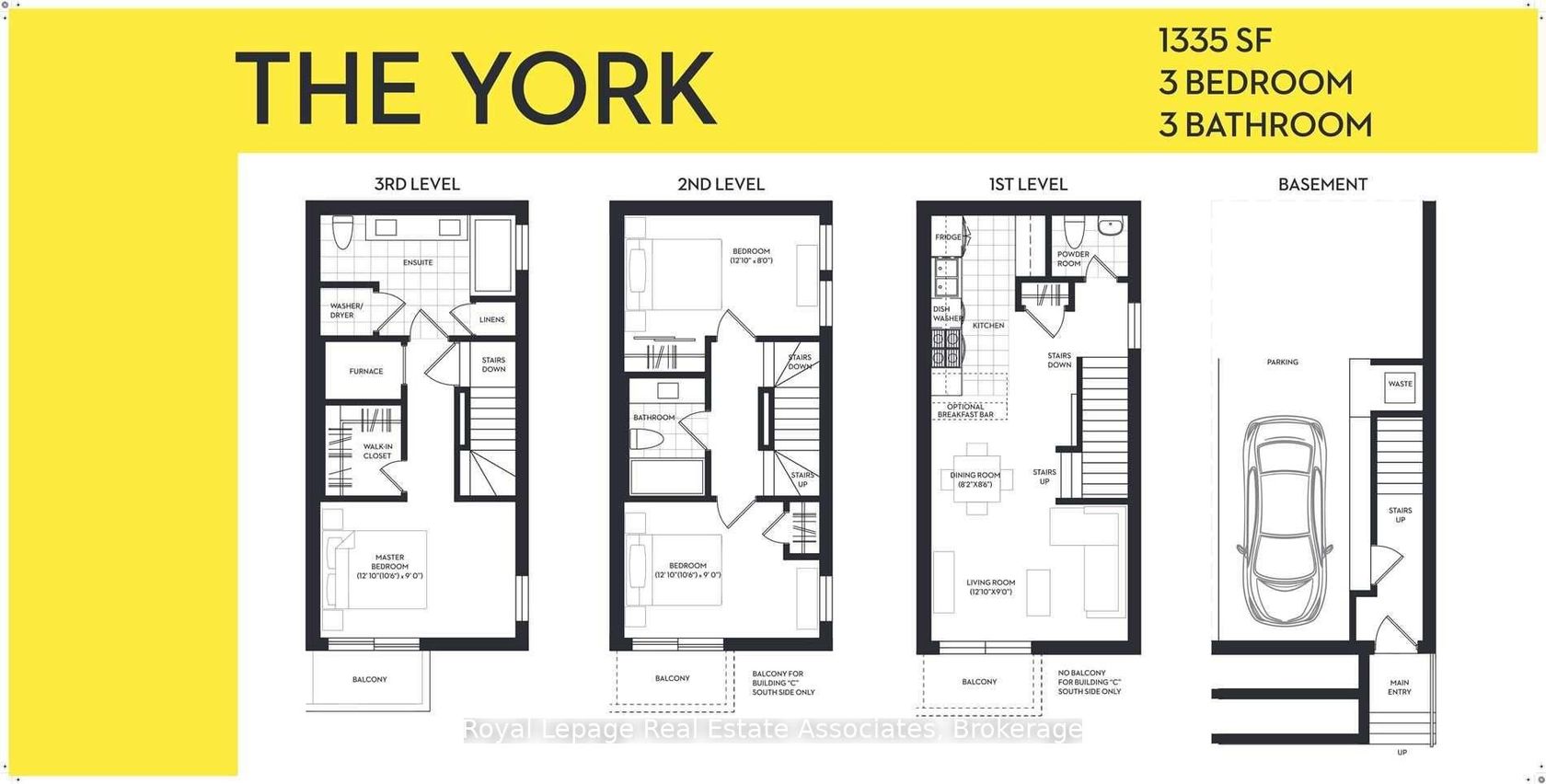 End unit 3-storey townhome offering 3 bedrooms, 3 bathrooms, and 1,334 sq ft of living space. The sun-filled open concept main floor features 9' ceilings and a bright, functional layout. The kitchen includes stainless steel appliances and a convenient nook for additional counter space and storage. The home has been freshly painted and features hardwood floor & tile throughout. The primary bedroom includes a walk-in closet and a fully renovated 4-piece ensuite, while the second and third bedrooms offer flexible space for family, guests, or a home office. Additional features include underground parking, locker and maintenance fees that cover: water, garbage removal, window cleaning, snow removal, and landscaping. Conveniently located near the UP Express and with quick access to Highways 401 and 400.