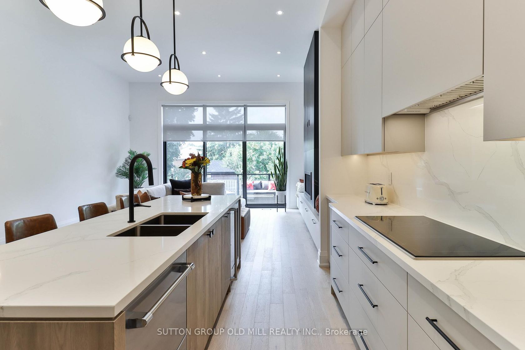 Luxury living in the heart of Etobicoke. This meticulously crafted residence showcases elevated design and exceptional attention to detail throughout. Soaring ceilings create an immediate sense of space, while the inviting living area is anchored by a cozy fireplace-perfect for relaxing winter evenings. Elegant Kentwood hardwood flooring flows throughout the home, beautifully complemented by striking white oak feature walls. The chef-inspired kitchen by Cameo Kitchens is the true centerpiece, blending style with modern functionality. It features sleek European cabinetry, premium Fisher & Paykel appliances, a 42-inch integrated fridge, double wall ovens, and an induction cooktop. Dishwasher drawers are seamlessly integrated into the island, creating a streamlined space ideal for both everyday living and entertaining. The sun-filled dining area offers an expansive setting for hosting family and friends. Upstairs, the primary suite serves as a private retreat, complete with a coffered ceiling, a cozy sitting area, custom dressing room, and a spa-inspired ensuite featuring a soaker tub, double vanity, oversized rain shower, and heated floors. A convenient second-floor laundry room adds to the home's thoughtful design. Smart home technology enhances daily living with integrated speakers, Google Nest climate control, and security cameras for added peace of mind. The lower level offers a refined basement retreat perfect for entertaining, while the backyard oasis is designed for unforgettable gatherings. Situated on a quiet, family-friendly street in desirable South Etobicoke, this home offers quick access to major highways, transit, parks, excellent schools, and the lakefront. A rare blend of luxury, comfort, and cutting-edge design-this is truly a one-of-a-kind place to call home.