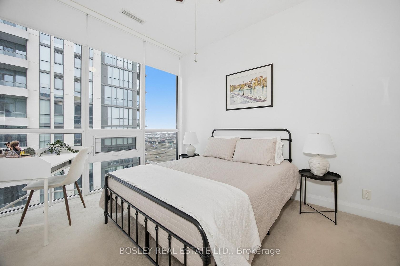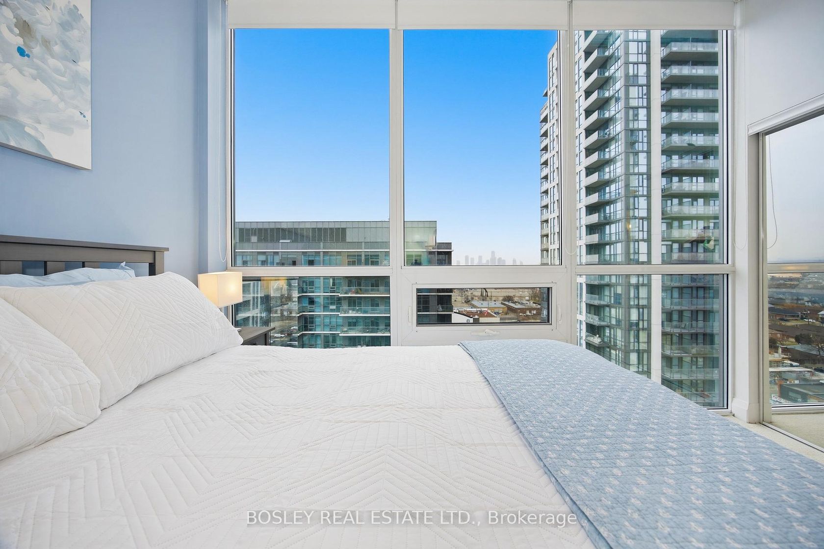 Penthouse Living at Its Finest- Southeast Corner, Unobstructed Views, and the Largest Suite in the Building! Perched on the top floor in a coveted southeast corner position, this stunning 2-bedroom + den, 2-bathroom penthouse is a rare offering that checks every box. At 901 sq. ft., it holds the title of the largest floor plan in the building- and every square foot is put to work. Soaring 10-foot ceilings and wall-to-wall, floor-to-ceiling windows bathe the space in natural light while framing outstanding views of the city skyline and Lake Ontario. The layout is as functional as it is beautiful: a generous living area with space for a full couch-and-TV setup, a proper dining area, a big kitchen with lots of counter space and storage, and a primary bedroom that comfortably fits a king-sized bed, complete with an expansive walk-in closet and a private ensuite. The second bedroom is equally impressive, and the den- a true nearly 8' x 8' space - works perfectly as a home office, nursery, or guest space. This is not a dent; it's a room. Meticulously maintained and in impeccable condition, this unit is truly move-in ready. The building delivers resort-style amenities: indoor pool, sauna, hot tub, fully equipped gym, outdoor terrace with BBQs, guest suites, pet wash station, visitor parking, and 24/7 concierge. Step outside and you're immediately beside a beautiful park with a dedicated off-leash dog area. Groceries, great restaurants and the TTC are all within a few minute's walk, and the Gardiner Expressway, and Hwy 427 are all within easy reach. Whether you're walking, taking transit, or driving, this location works, especially for those working at Pearson Airport - fast commute time by car and an express bus route if you don't want to drive!