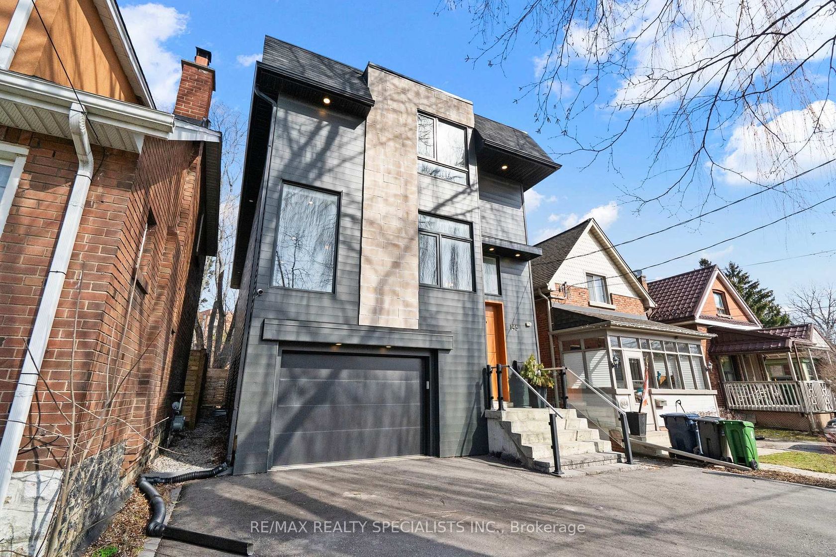 Custom-built prefab home in Mimico-by-the-Lake leaves the community in awe! This recently built, nearly 2,500 sq. ft. modern residence with an additional 779 sq. ft. in the lower level has the entire neighbourhood talking. From curious passersby to locals like Jean, the neighbourhood dog walker, who said, "It was impressive to watch it go up," and Marian from the Mimico Moms group calling it "so modern and tasteful," the buzz is well deserved. Blending eco-conscious prefab construction with high-end luxury, this home delivers both style and substance. The main level offers seamless, single-level living, no steps, creating an expansive open-concept space. Highlights include an oversized powder room, walk-in pantry, and a striking matte blue custom kitchen featuring premium appliances, a downdraft stove, and a built-in Sub-Zero wine fridge. Walk out to an oversized deck overlooking a generous 31 x 128 ft. lot rare space that allows for this scale of home. Upstairs, you'll find four bedrooms and two full baths. The primary suite offers a spa-like retreat with a freestanding tub, custom shower, double vanity, and a walkthrough closet. The additional bedrooms are all well-sized, and convenient second-floor laundry adds everyday ease. The lower level is a true standout, with soaring ceilings, large above-grade windows and Murphy bed. Complete with a bedroom, full bath, and a functional mudroom nook with separate entrance to the spacious garage, it's no wonder neighbours are calling it "the best basement in Mimico." Finished with white oak engineered floors and custom glass floating stairs, this home is truly preFABulous. Mimico GO and the lake are your doorstep! Note: Fourth bedroom does not have a window.