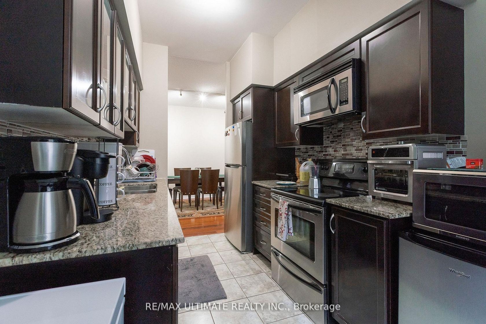 Welcome to this fabulous main-floor corner condo, offering west and south exposure, soaring 9-ft ceilings, and a private terrace perfect for outdoor relaxation. Built in 2007 and meticulously maintained, this spacious 2-bedroom, 2-bathroom suite features 949 sq. ft. of well-designed living space plus a generous main-level terrace. Ideally situated just north of Wilson Ave. and steps from Wilson Plaza, convenience is truly at your doorstep. The open-concept layout provides a seamless flow through the combined living and dining areas, leading into a modern kitchen equipped with granite countertops, ceramic backsplash, glass cabinetry, stainless steel appliances, and a cozy breakfast area-a great setup for everyday living and entertaining. Both bedrooms are generously sized, with the primary suite offering a 4-piece ensuite and walk-in closet. Large windows throughout the unit invite abundant natural light, enhancing the warm, contemporary finishes and creating an inviting atmosphere. Perfectly located near TTC transit, Highway 401, Yorkdale Mall, Humber River Hospital, schools, and parks, this home blends comfort, style, and exceptional convenience. A fantastic opportunity for first-time buyers, downsizers, or investors seeking a solid property in a central, high-demand location.
